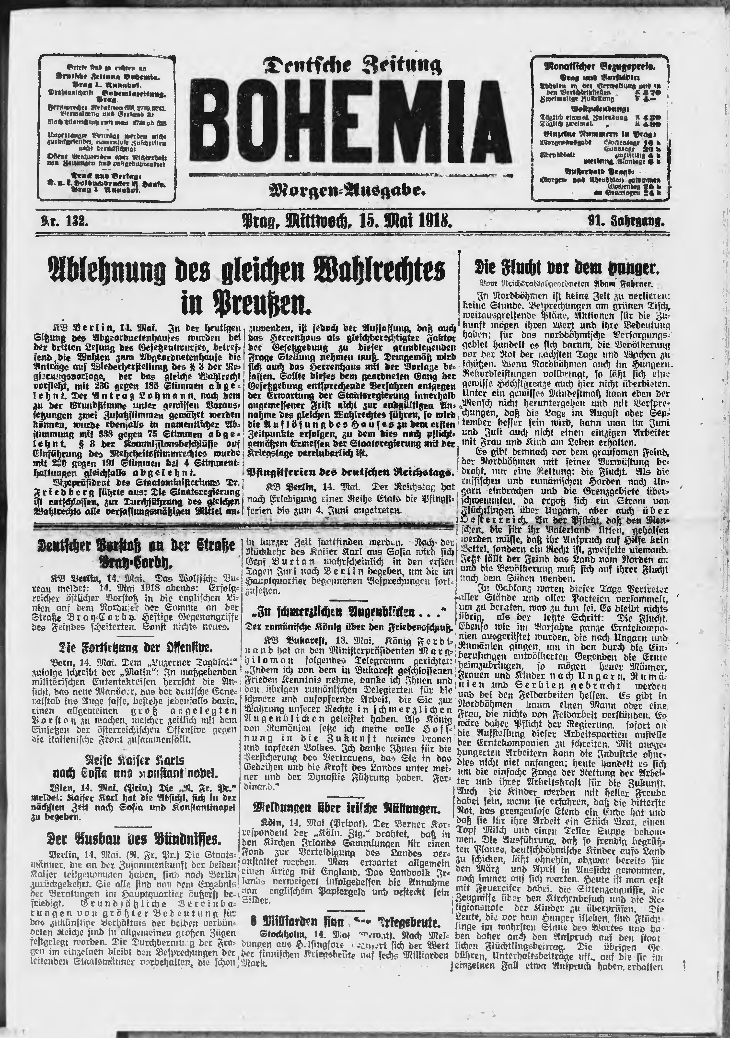* Datum vydání výtisku: 15.5.1918 Číslo výtisku: 132 Poznámky k výtisku: ranní vydání;