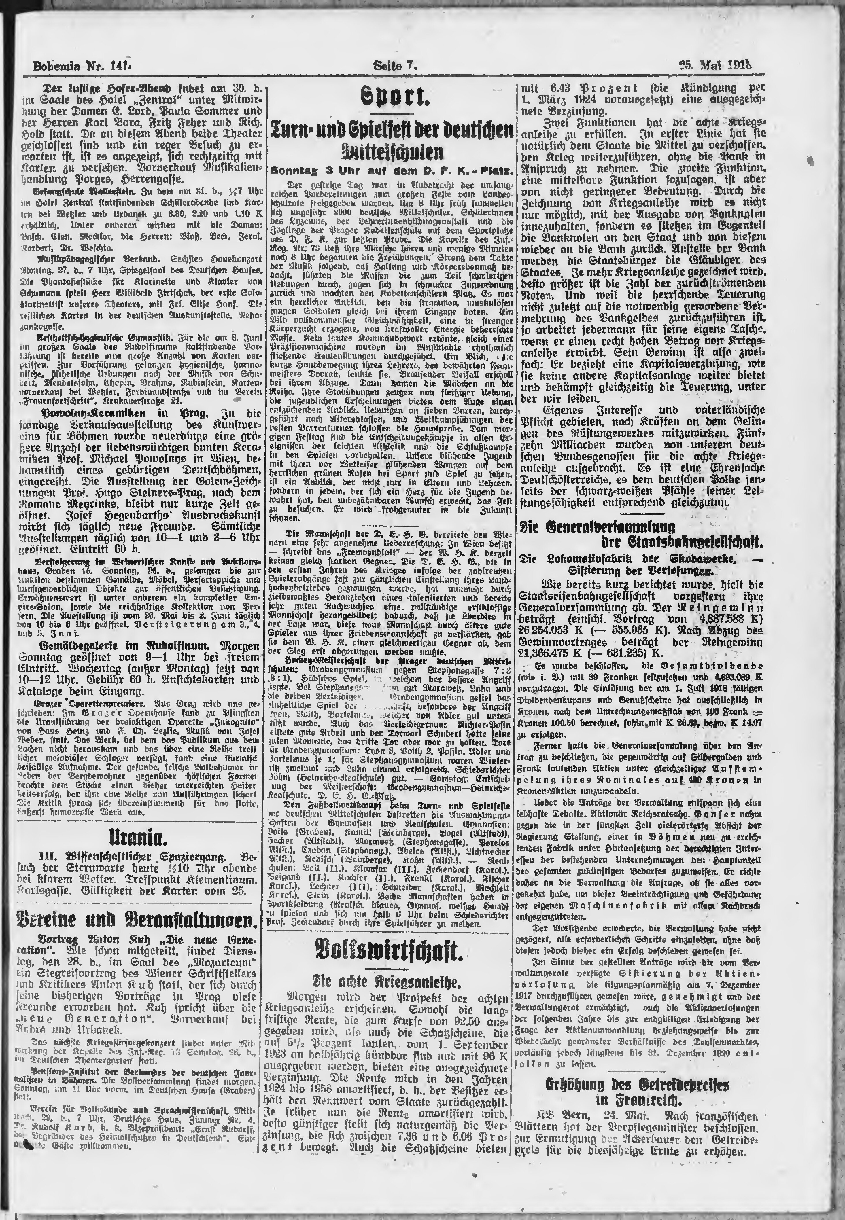* Datum vydání výtisku: 25.5.1918 Číslo výtisku: 141 Poznámky k výtisku: ranní vydání;