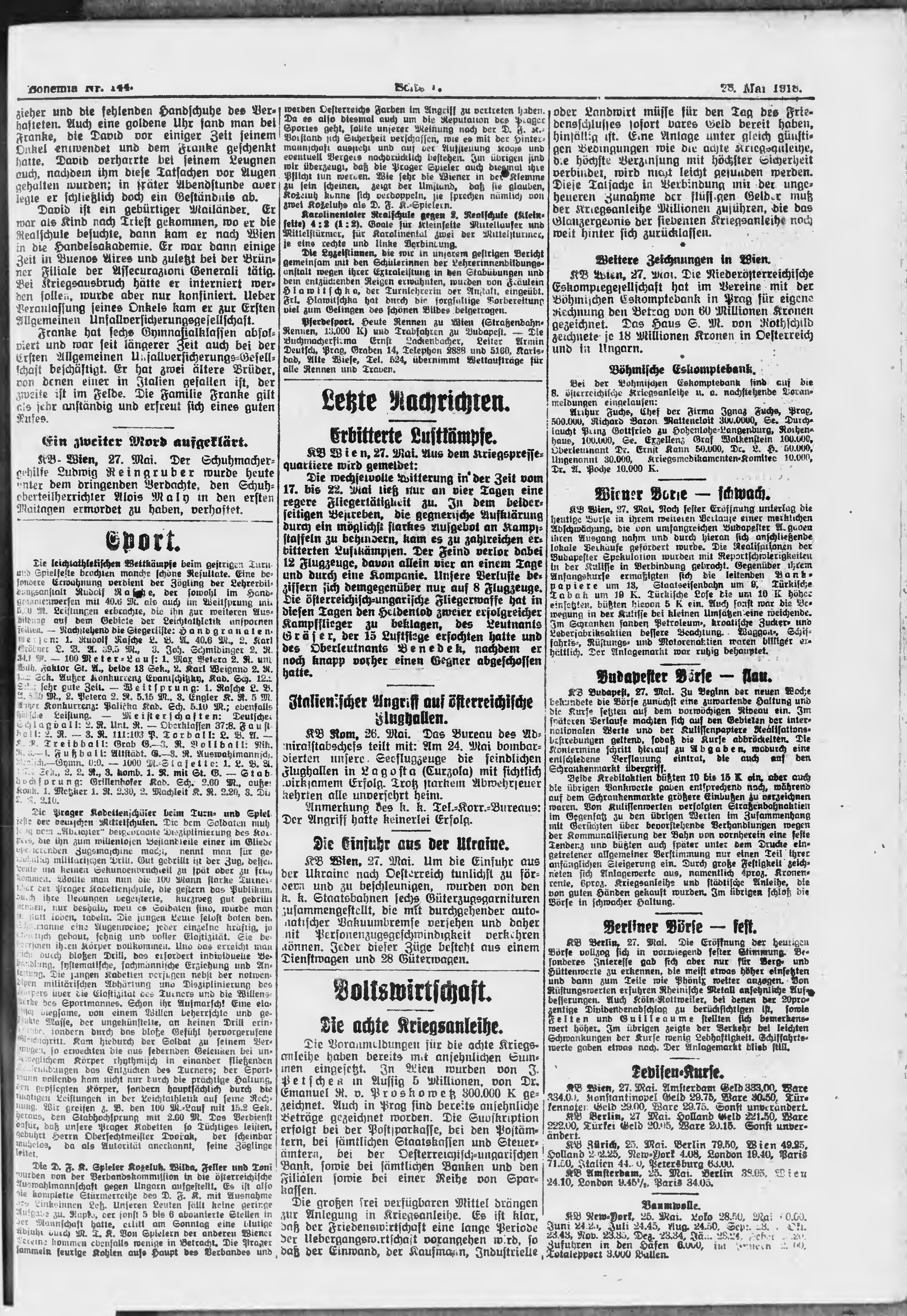 * Datum vydání výtisku: 28.5.1918 Číslo výtisku: 144 Poznámky k výtisku: ranní vydání;