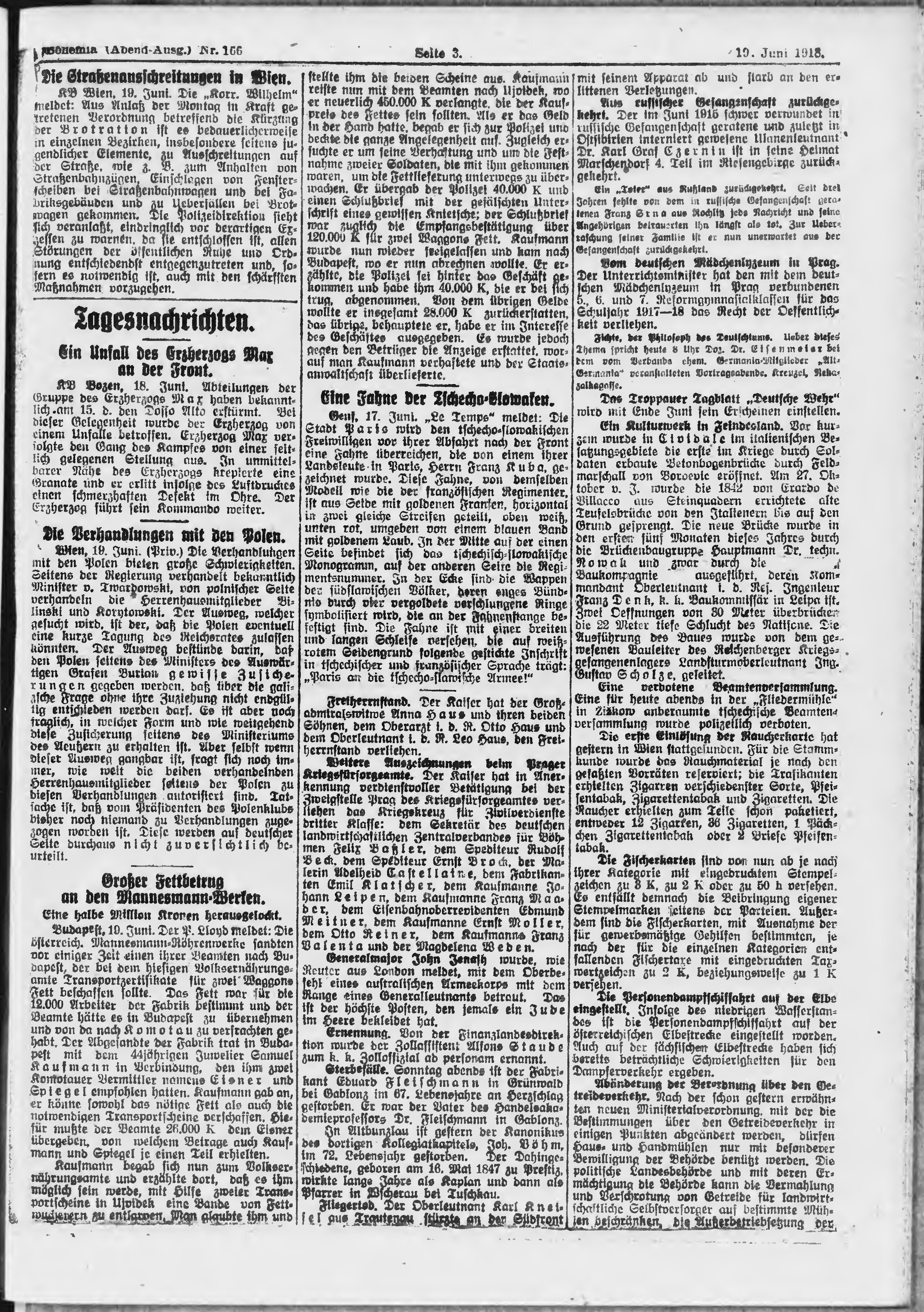 * Datum vydání výtisku: 19.6.1918 Číslo výtisku: 166 Poznámky k výtisku: večerní vydání;