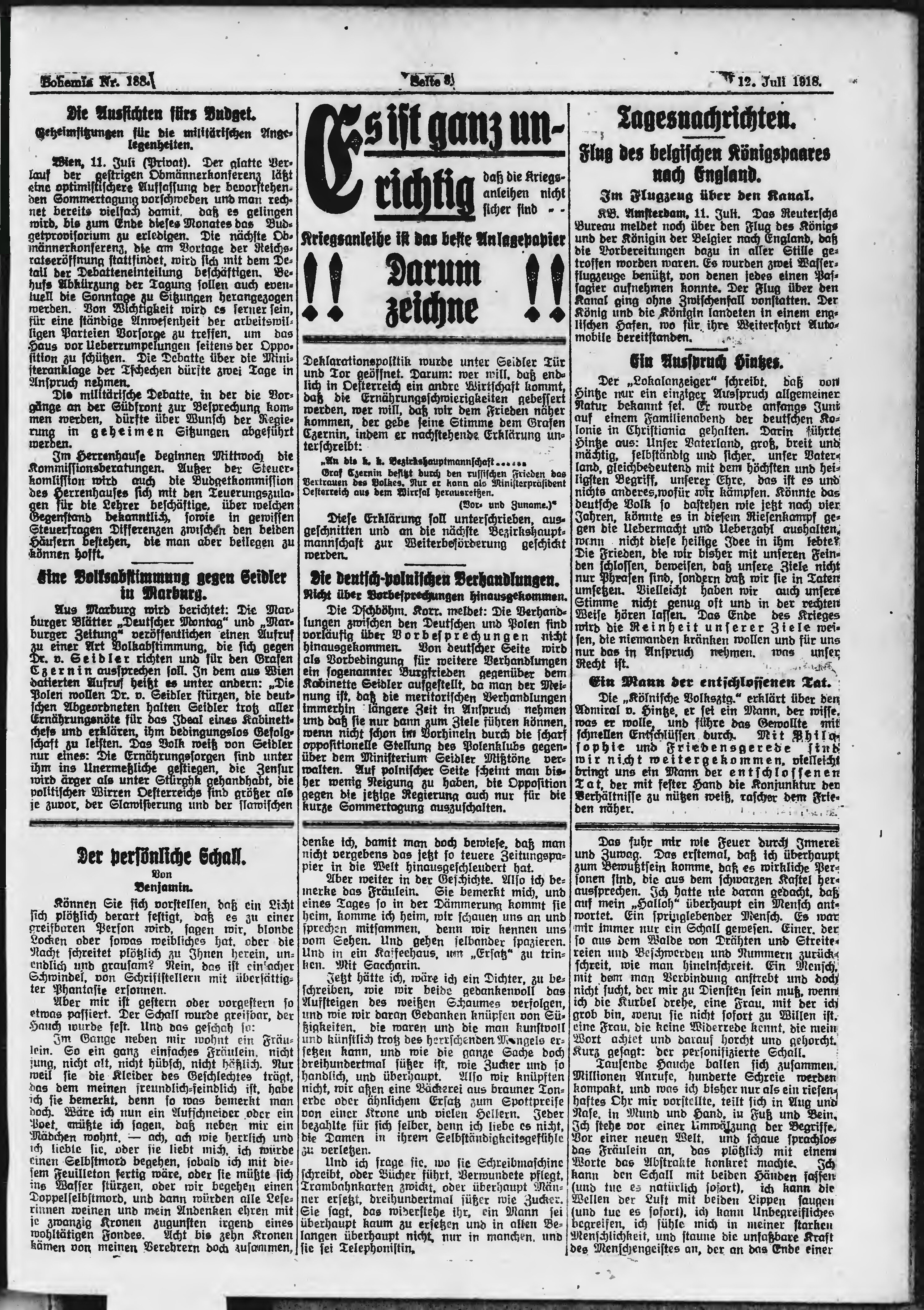 * Datum vydání výtisku: 12.7.1918 Číslo výtisku: 188 Poznámky k výtisku: ranní vydání;