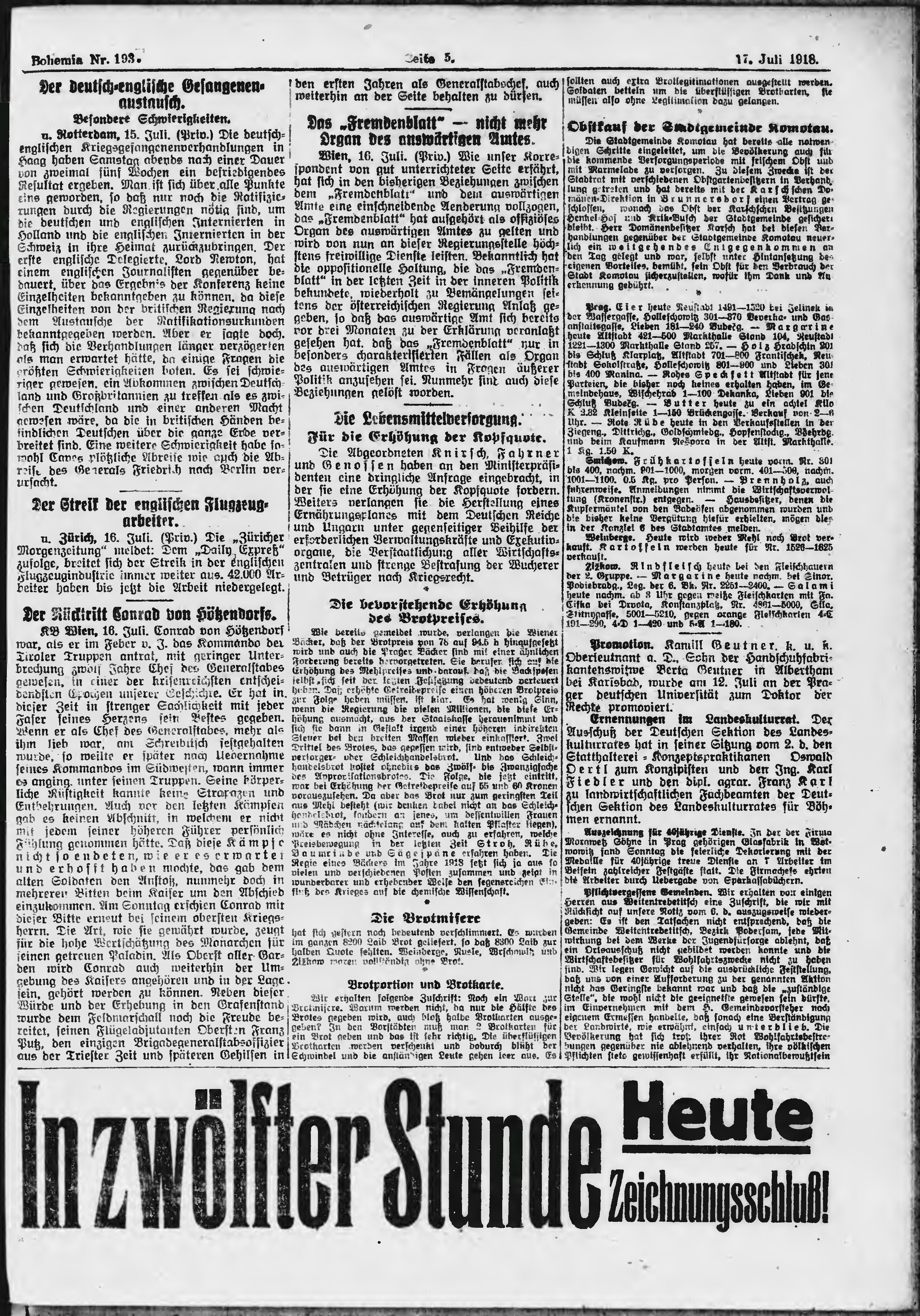 * Datum vydání výtisku: 17.7.1918 Číslo výtisku: 193 Poznámky k výtisku: ranní vydání;