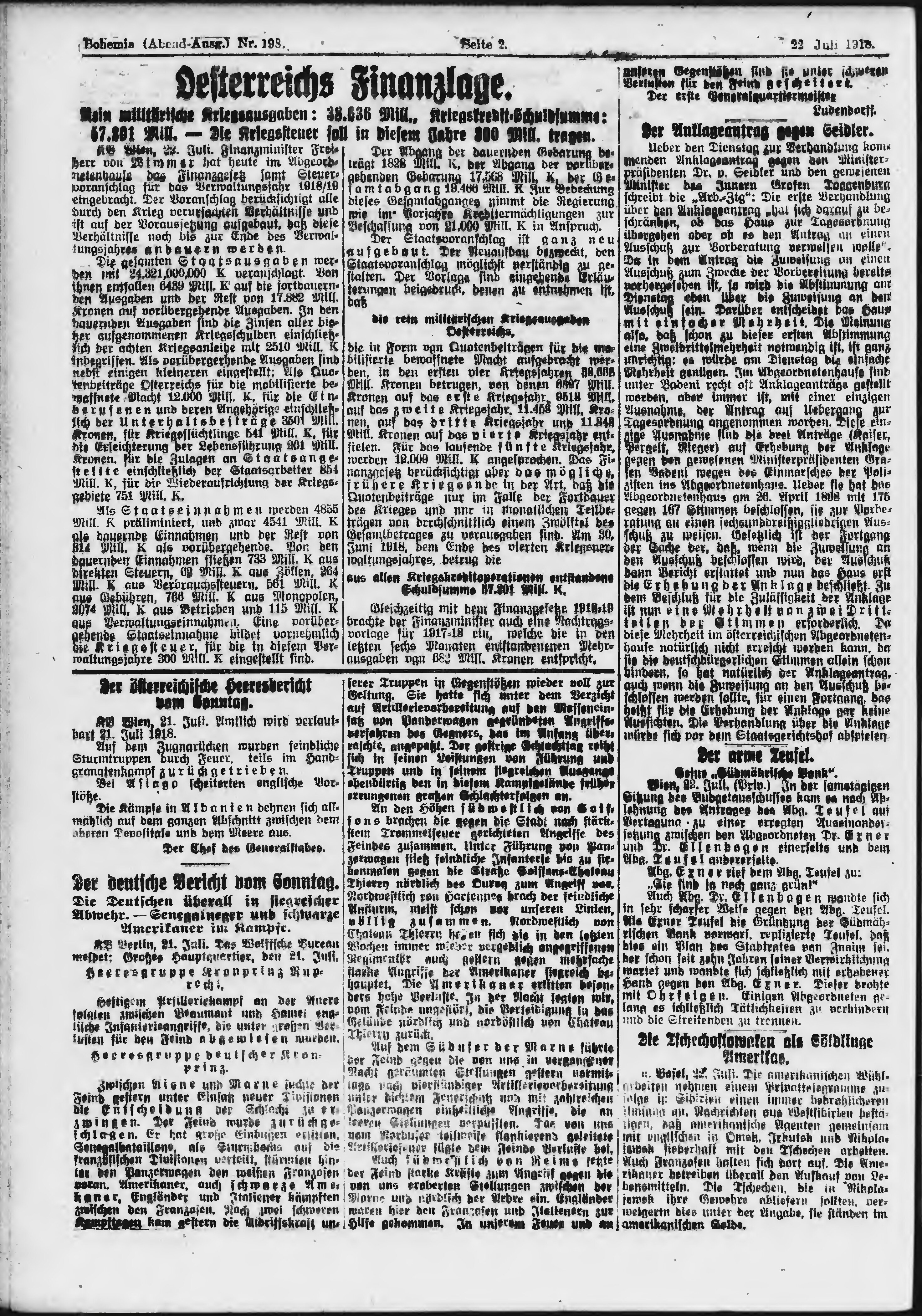 * Datum vydání výtisku: 22.7.1918 Číslo výtisku: 198 Poznámky k výtisku: večerní vydání;