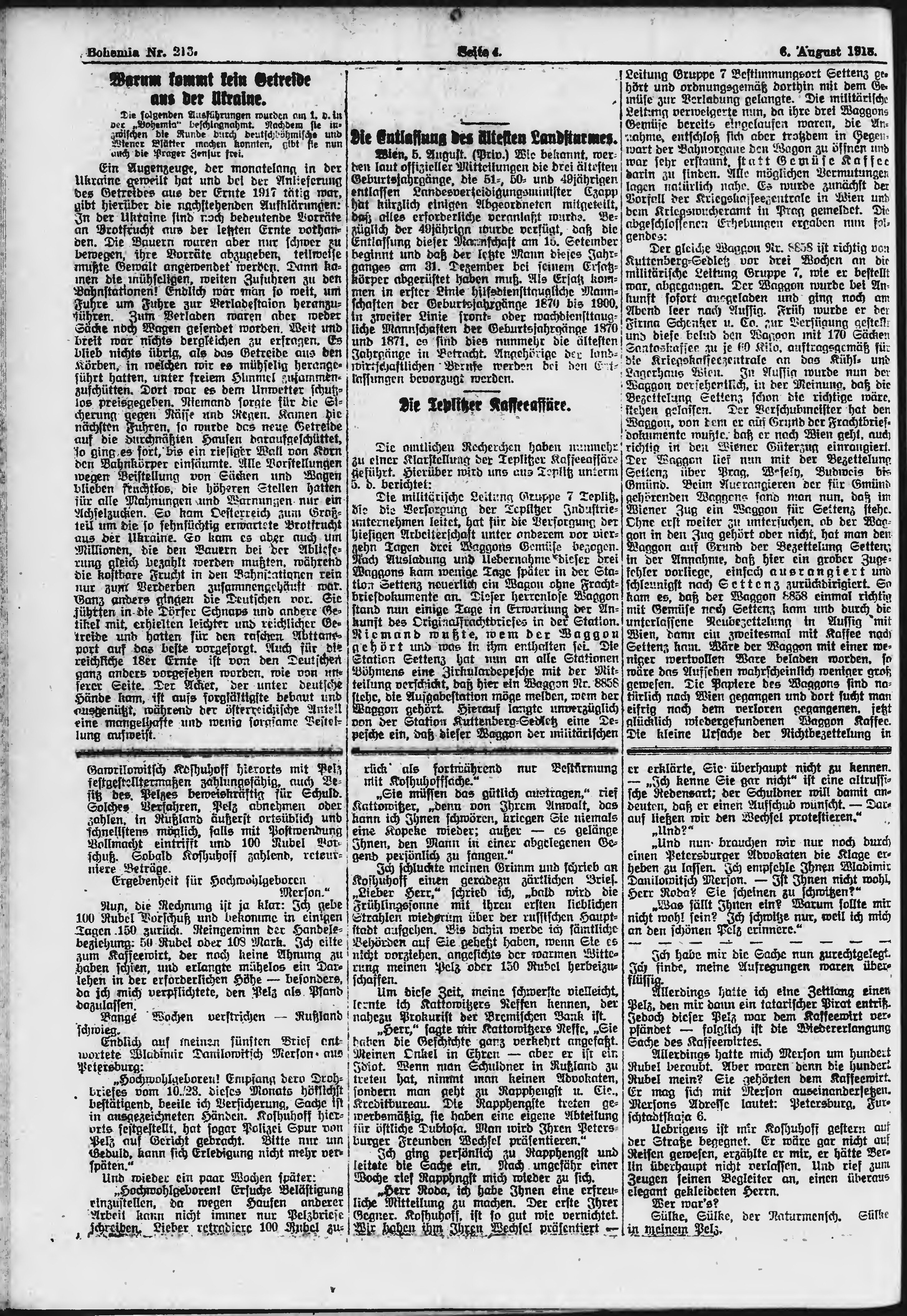 * Datum vydání výtisku: 6.8.1918 Číslo výtisku: 213 Poznámky k výtisku: ranní vydání;