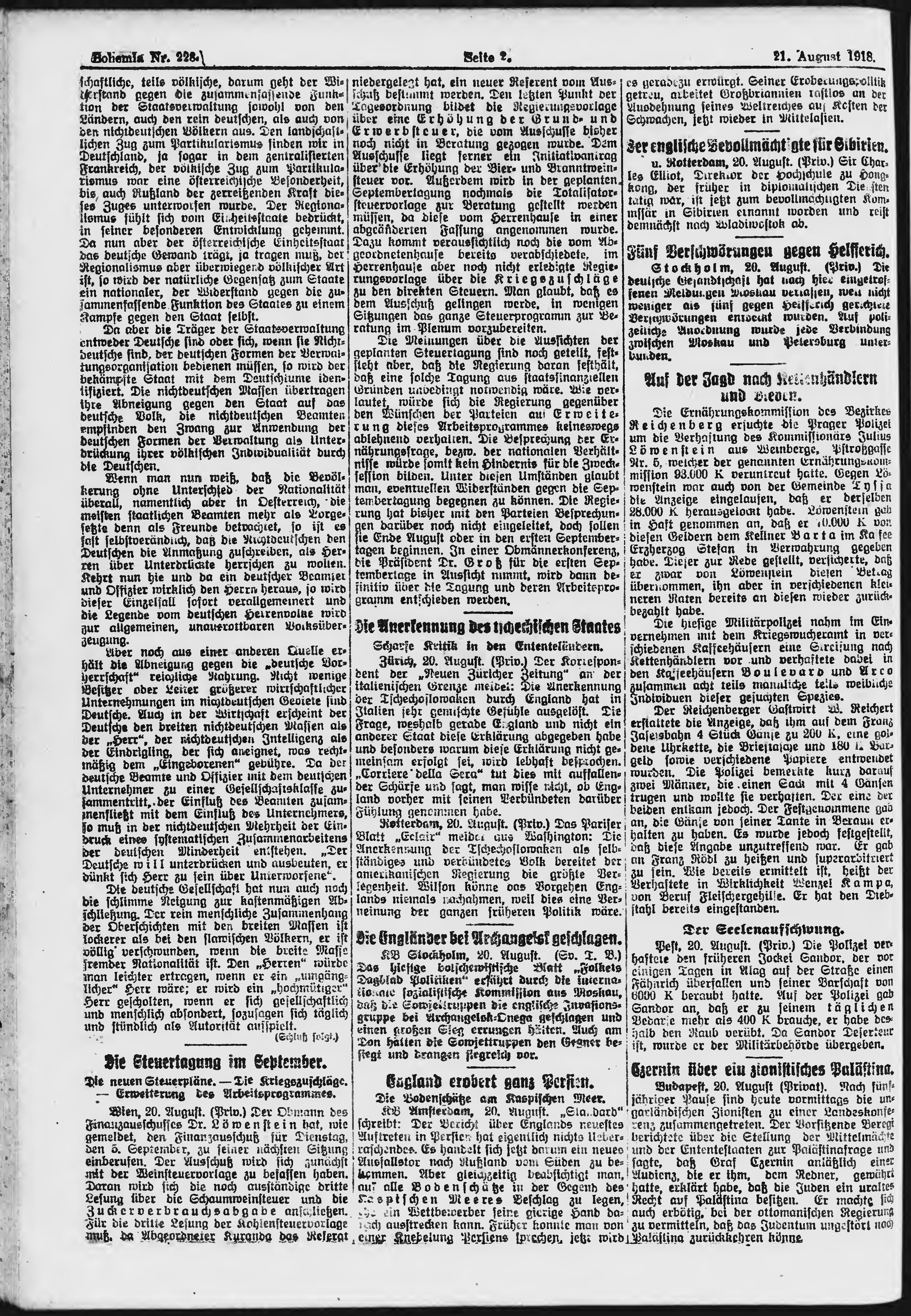 * Datum vydání výtisku: 21.8.1918 Číslo výtisku: 228 Poznámky k výtisku: ranní vydání;