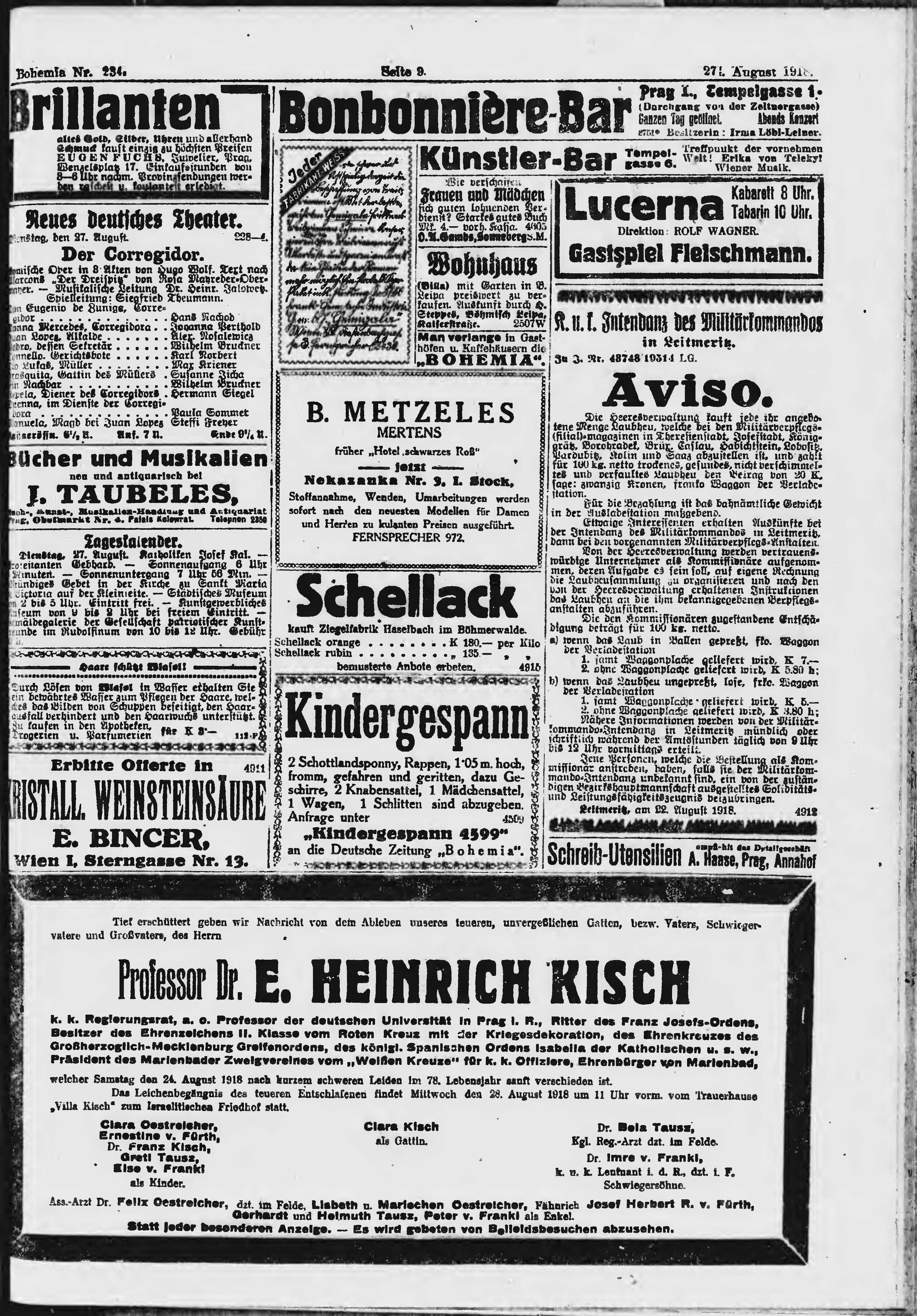 * Datum vydání výtisku: 27.8.1918 Číslo výtisku: 234 Poznámky k výtisku: ranní vydání;