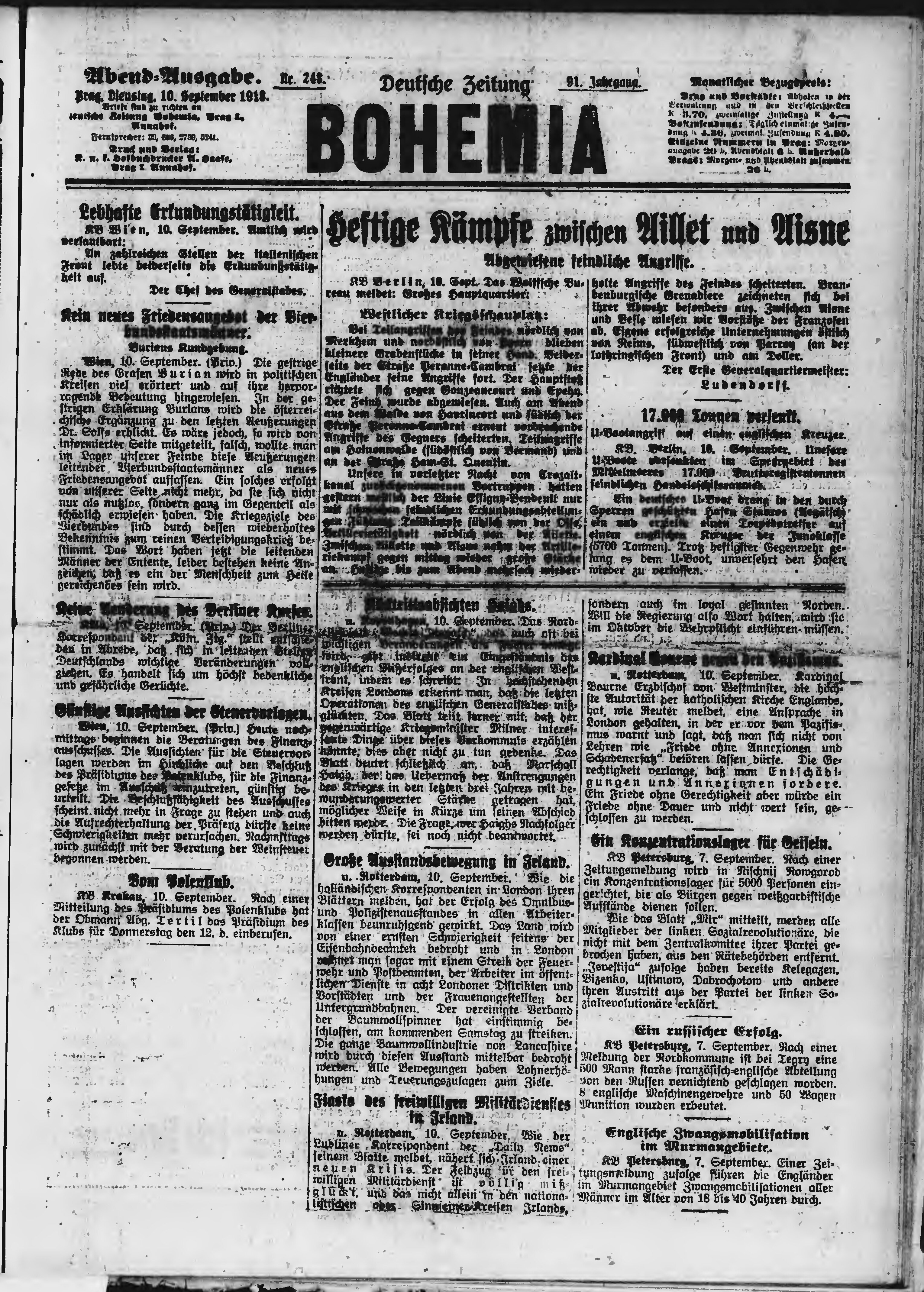 * Datum vydání výtisku: 10.9.1918 Číslo výtisku: 248 Poznámky k výtisku: večerní vydání;