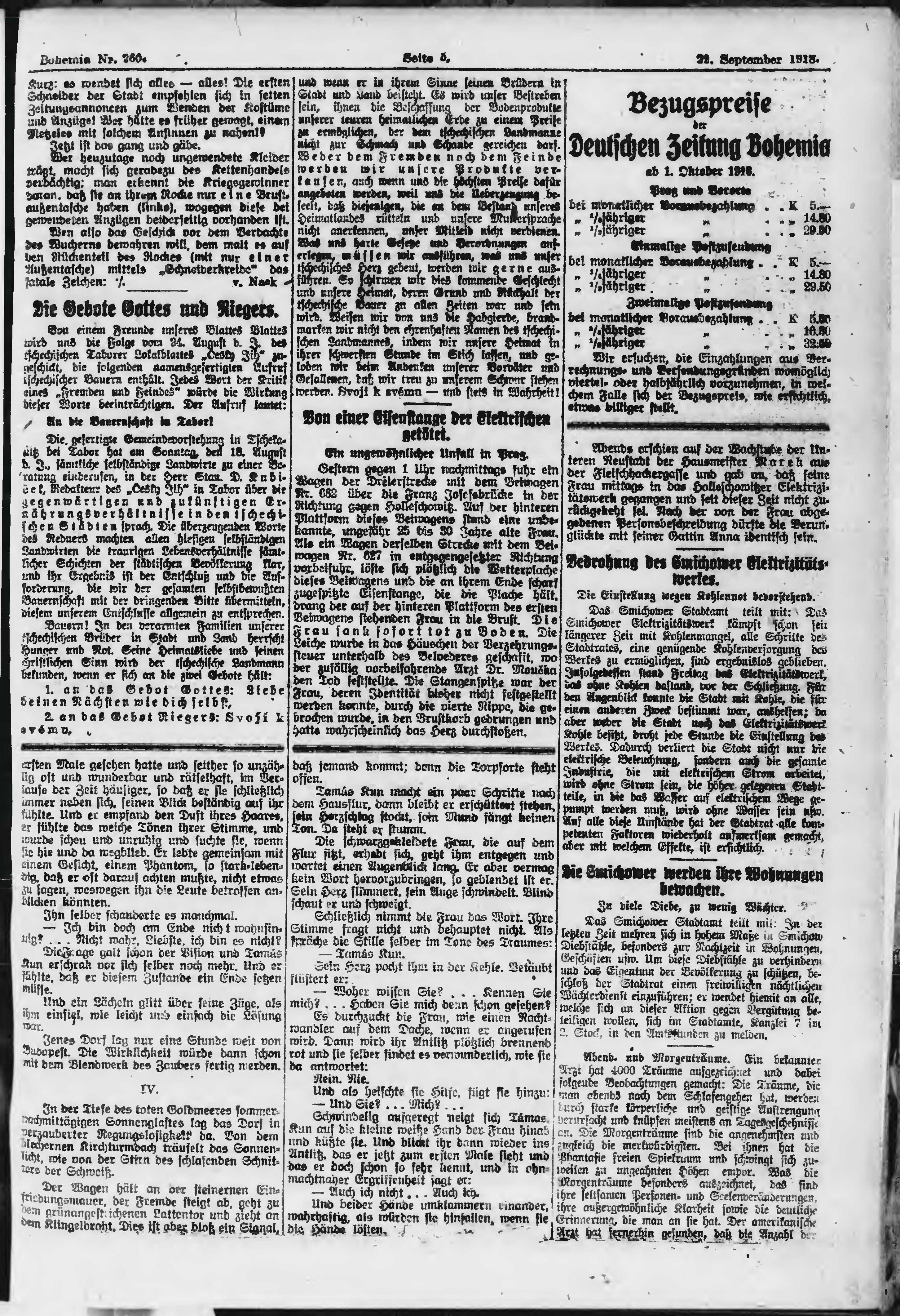 * Datum vydání výtisku: 22.9.1918 Číslo výtisku: 260 Poznámky k výtisku: ranní vydání;