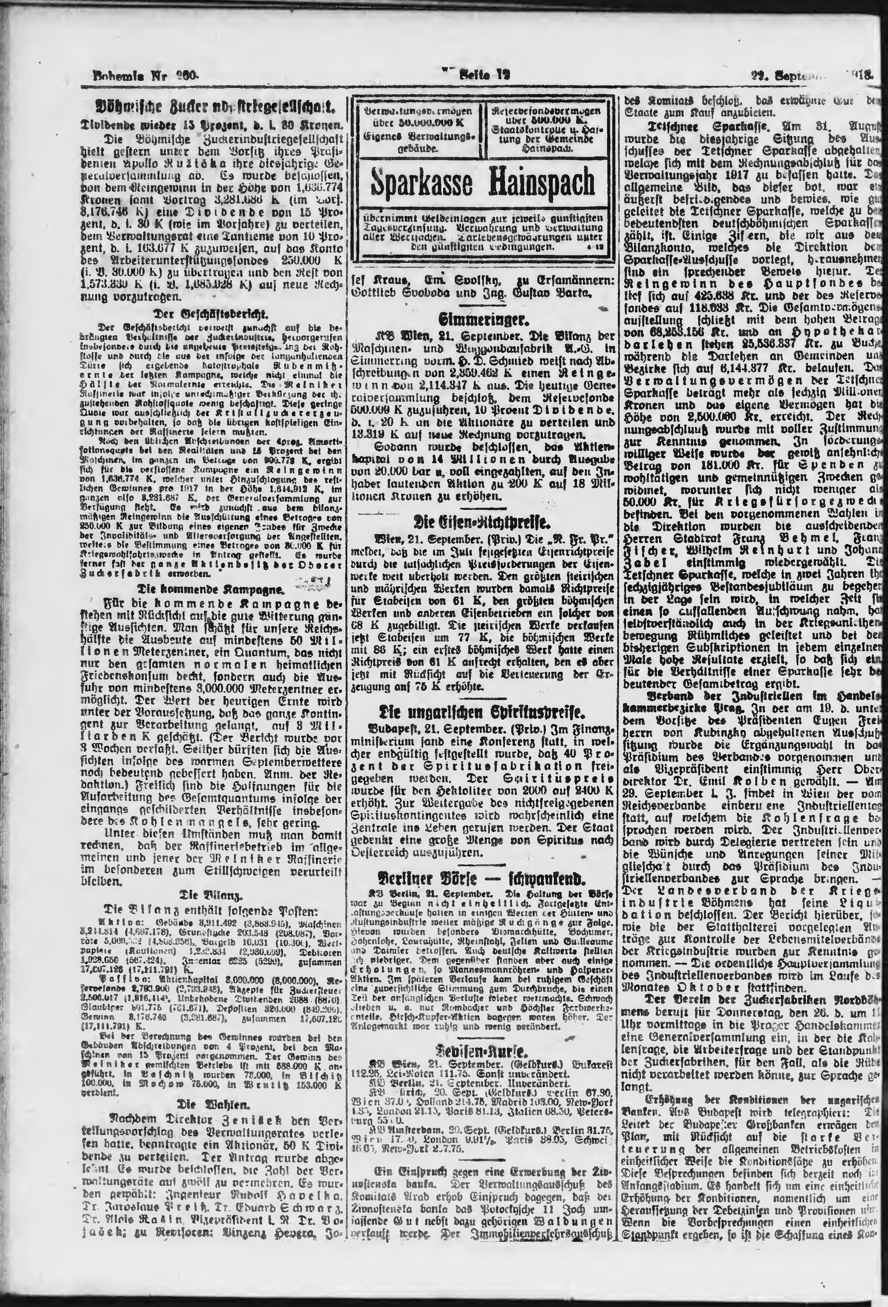 * Datum vydání výtisku: 22.9.1918 Číslo výtisku: 260 Poznámky k výtisku: ranní vydání;