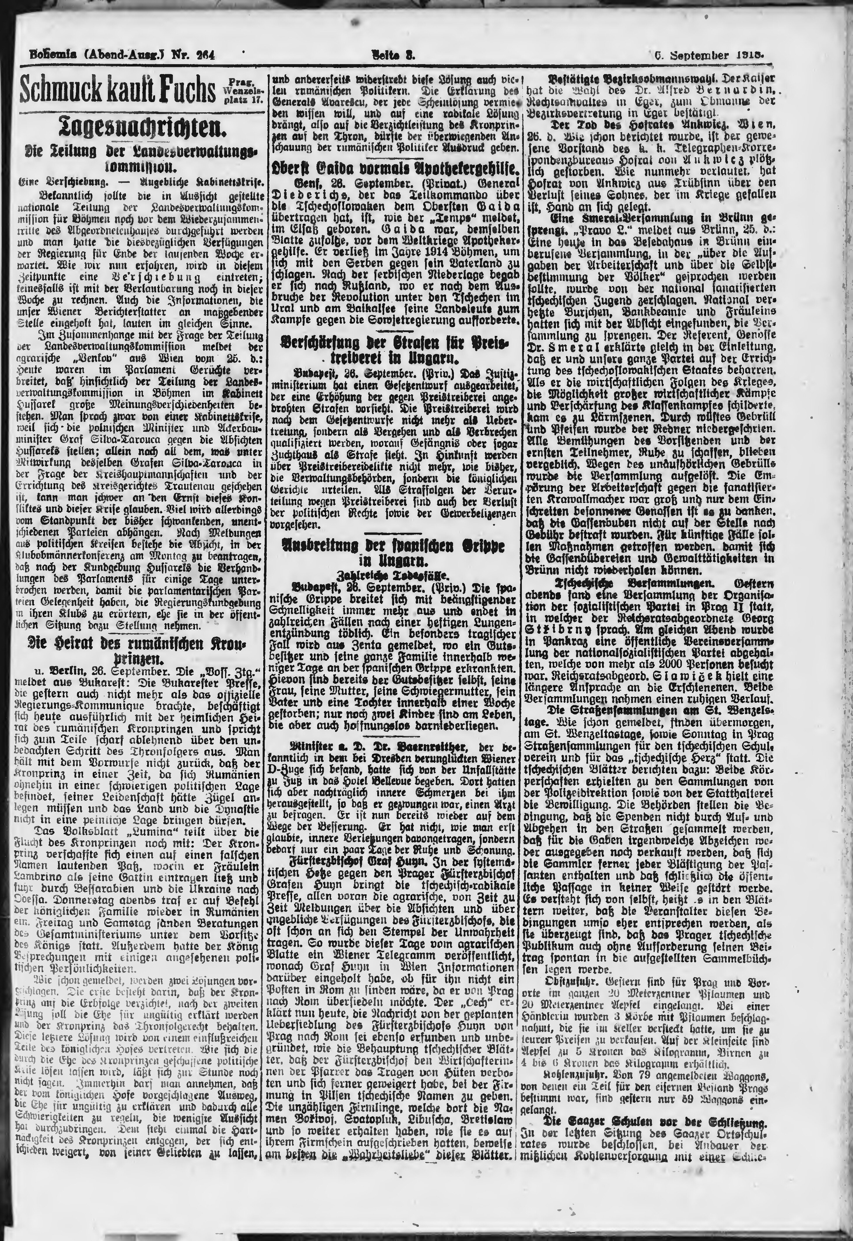* Datum vydání výtisku: 26.9.1918 Číslo výtisku: 264 Poznámky k výtisku: večerní vydání;