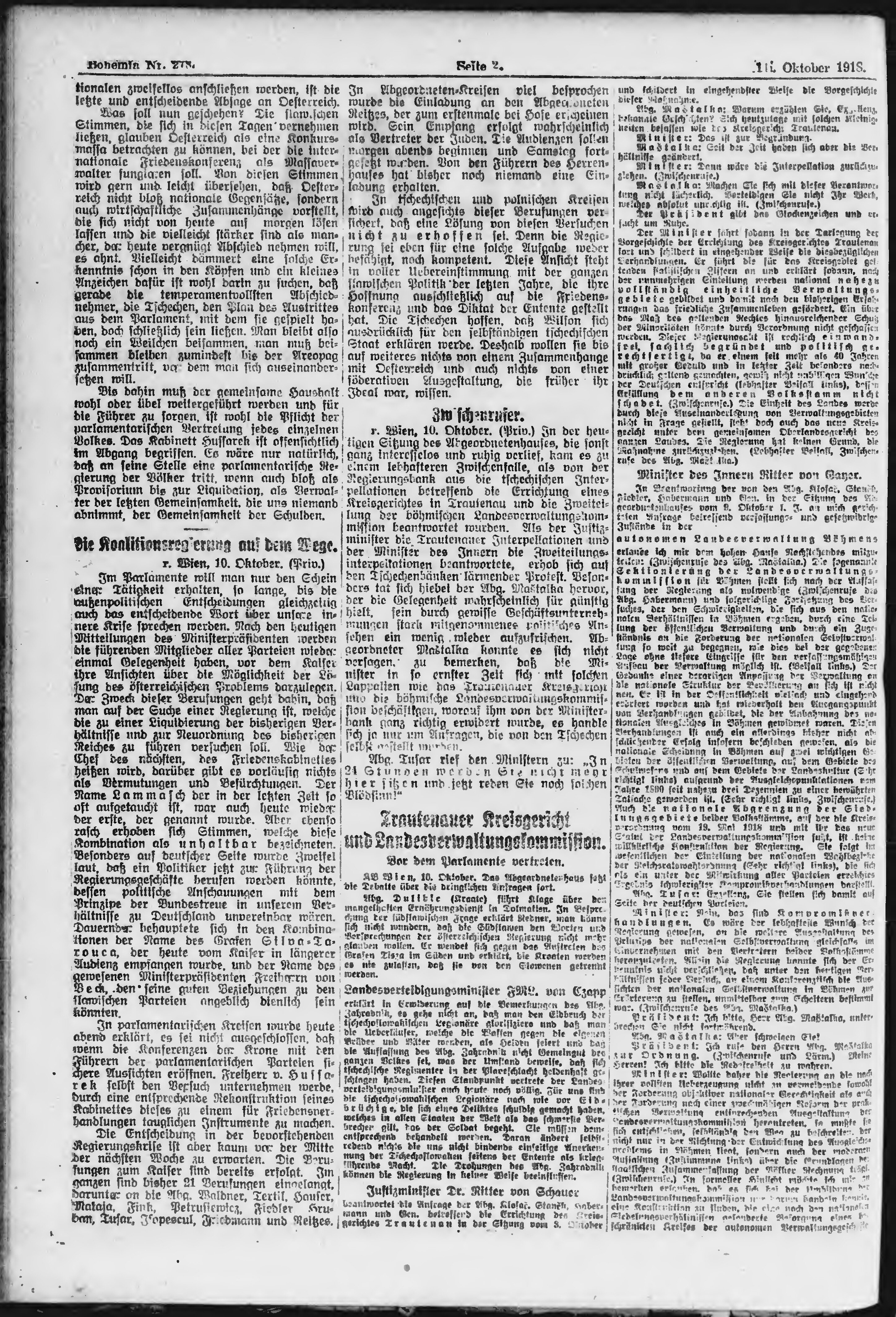 * Datum vydání výtisku: 11.10.1918 Číslo výtisku: 278 Poznámky k výtisku: ranní vydání;