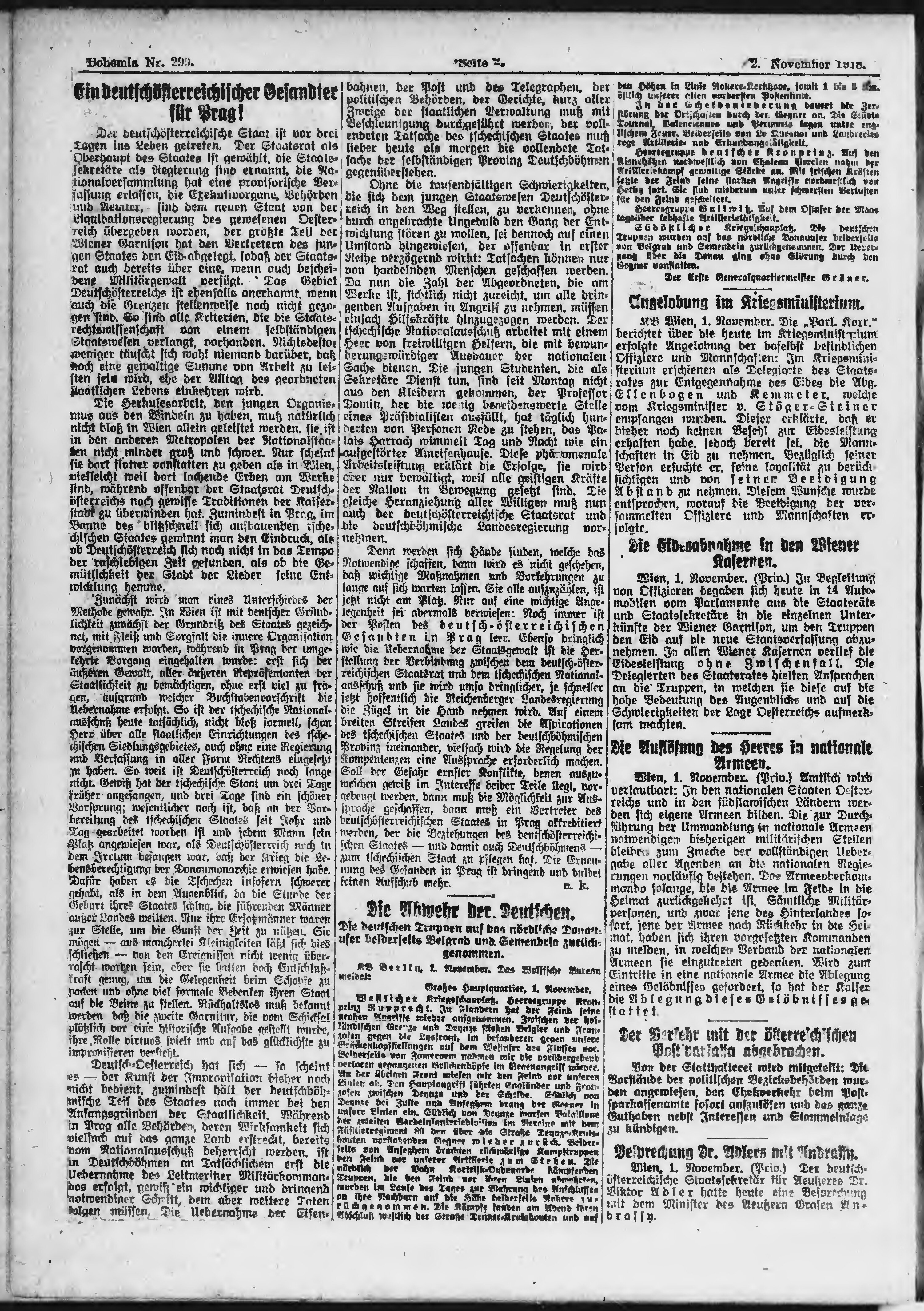 * Datum vydání výtisku: 2.11.1918 Číslo výtisku: 299 Poznámky k výtisku: ranní vydání;