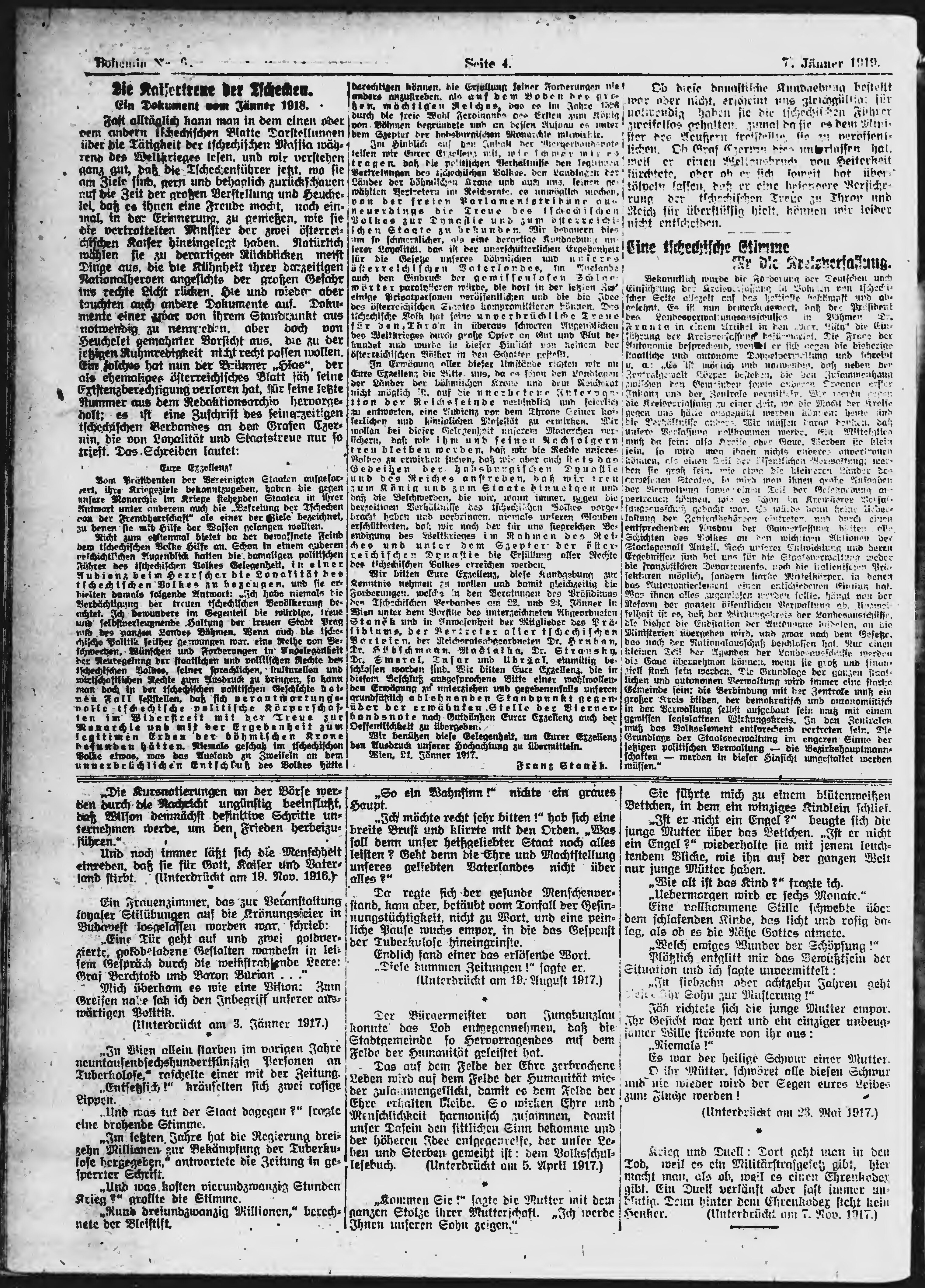 * Datum vydání výtisku: 7.1.1919 Číslo výtisku: 6 Poznámky k výtisku: ranní vydání;
