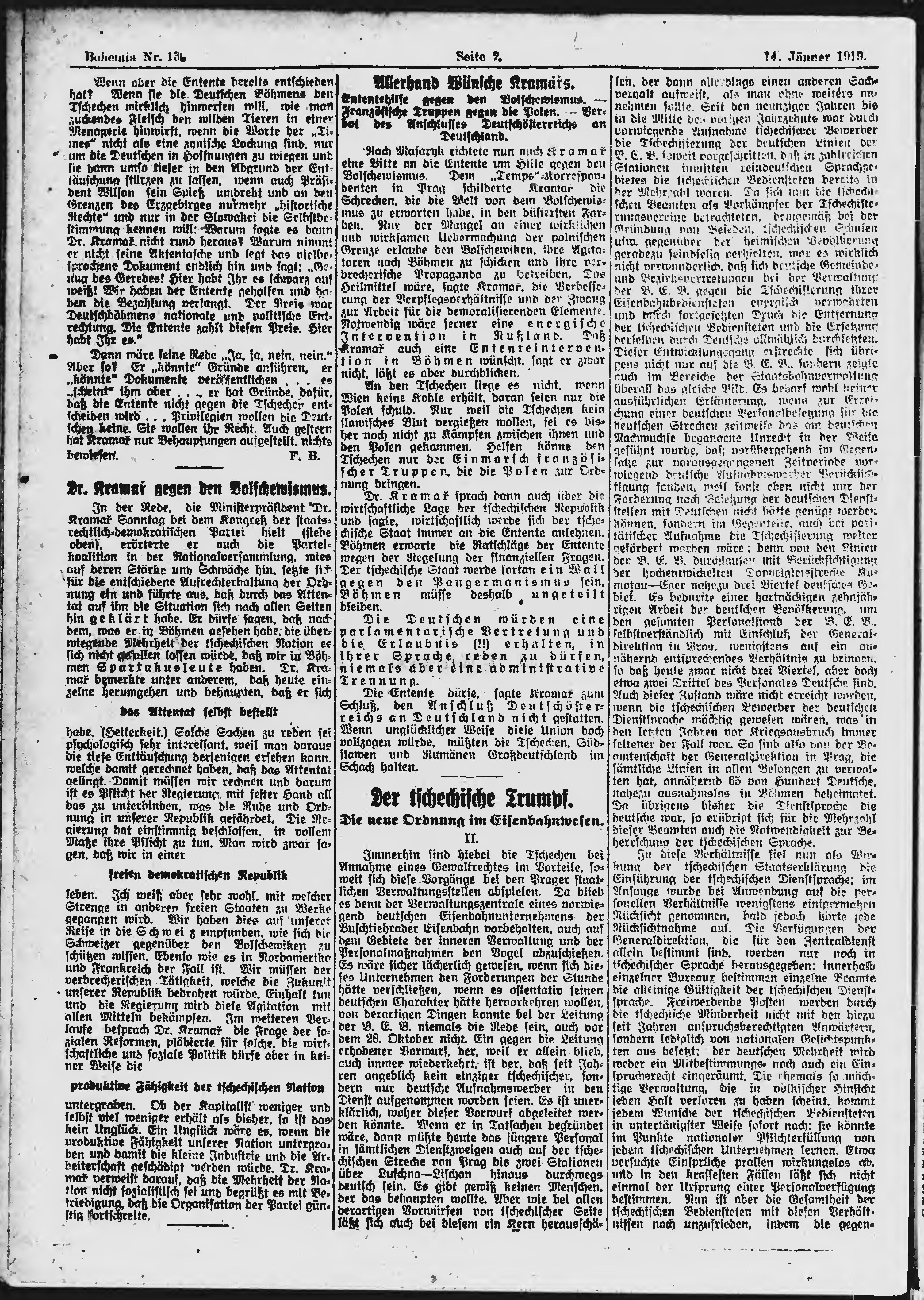 * Datum vydání výtisku: 14.1.1919 Číslo výtisku: 13 Poznámky k výtisku: ranní vydání;