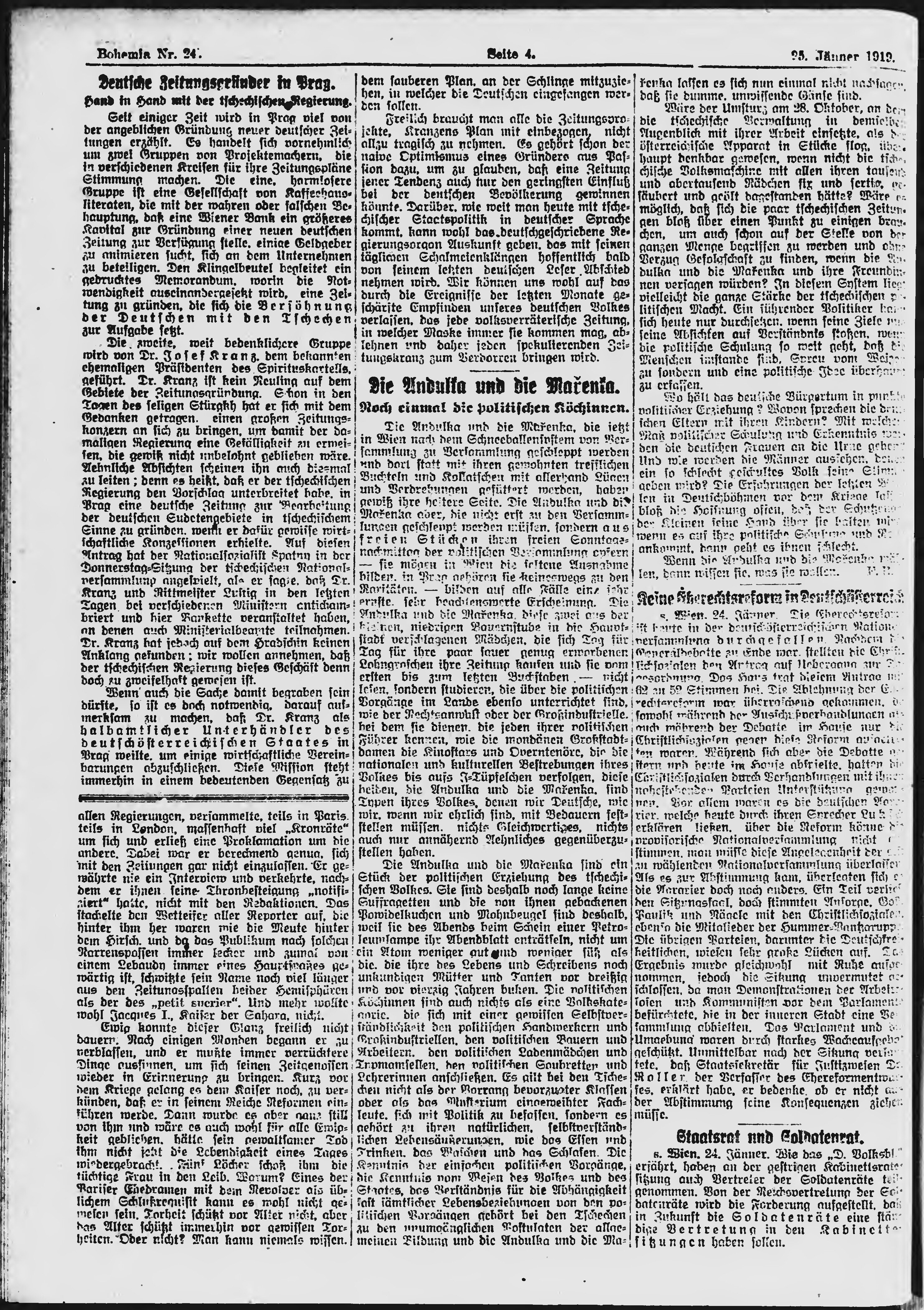 * Datum vydání výtisku: 25.1.1919 Číslo výtisku: 24 Poznámky k výtisku: ranní vydání;