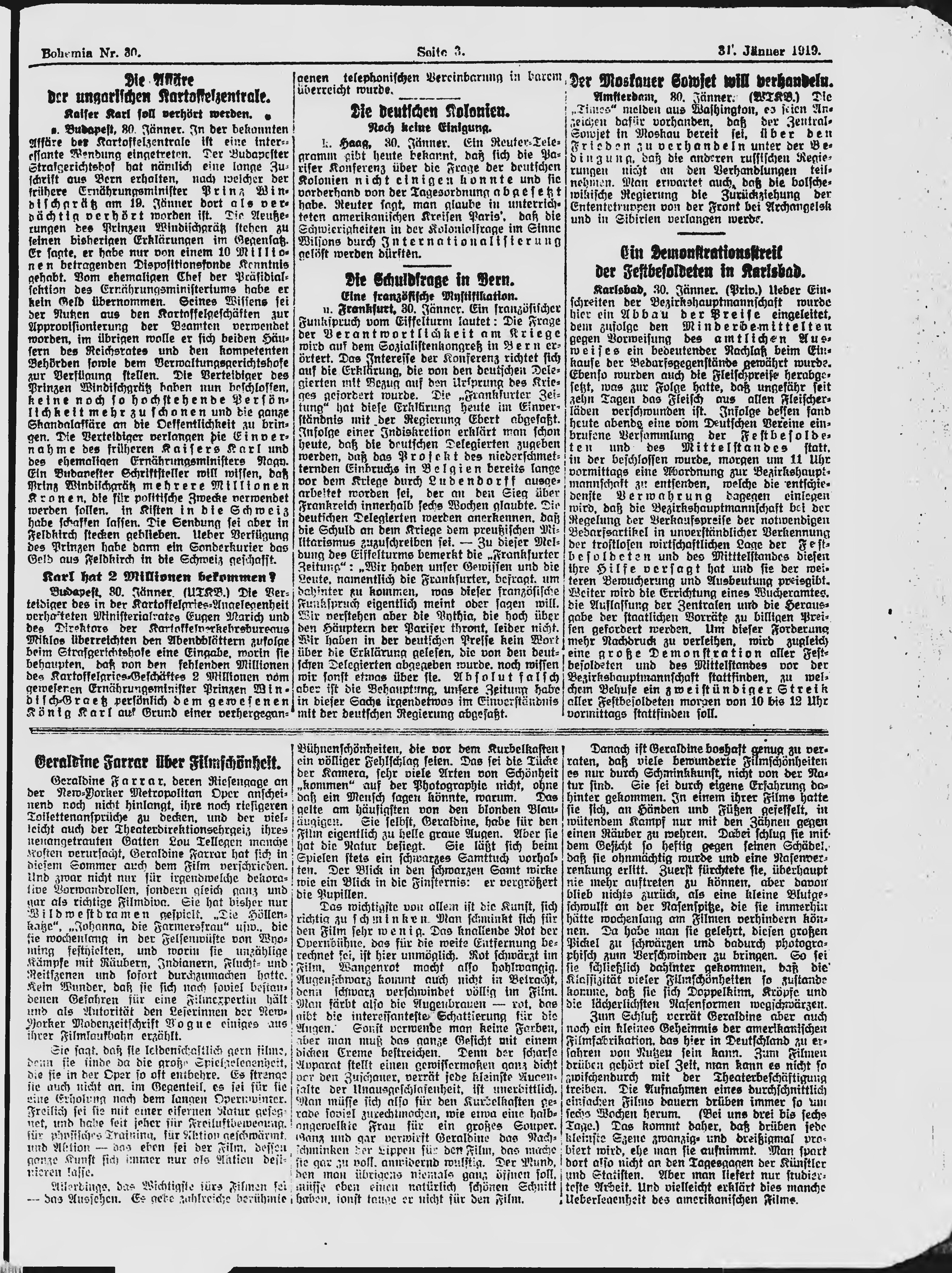 * Datum vydání výtisku: 31.1.1919 Číslo výtisku: 30 Poznámky k výtisku: ranní vydání;