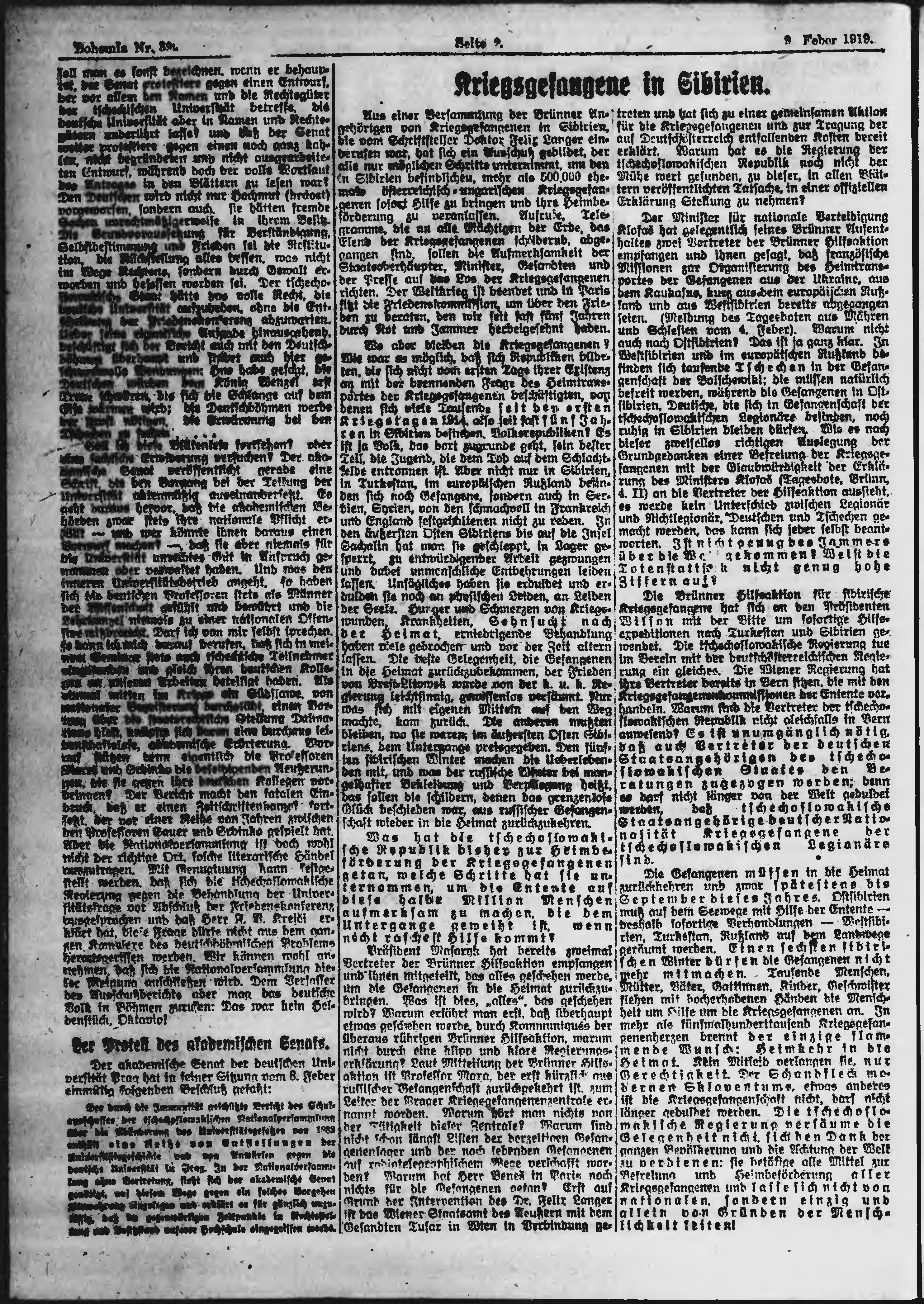 * Datum vydání výtisku: 9.2.1919 Číslo výtisku: 39 Poznámky k výtisku: ranní vydání;