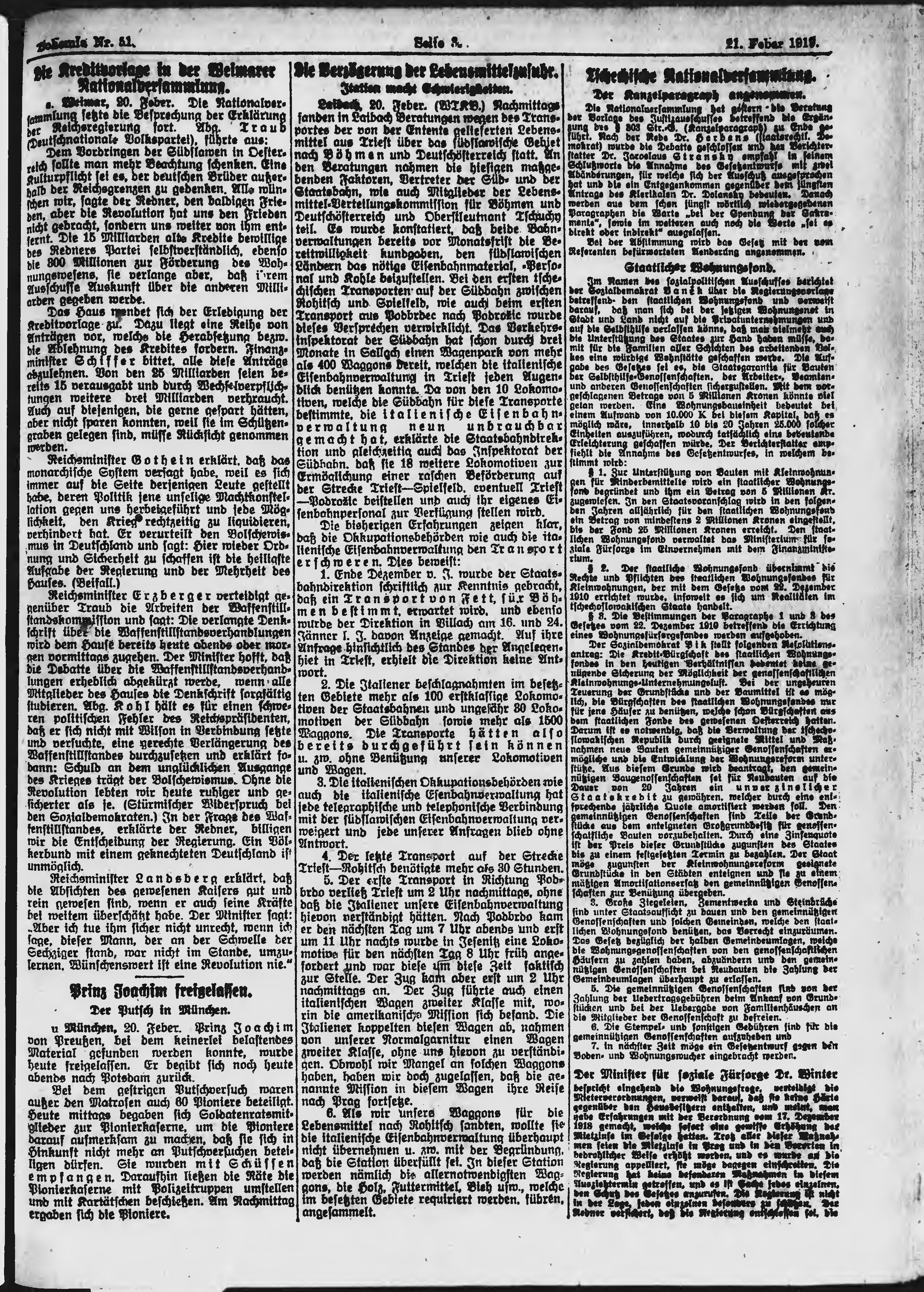 * Datum vydání výtisku: 21.2.1919 Číslo výtisku: 51 Poznámky k výtisku: ranní vydání;