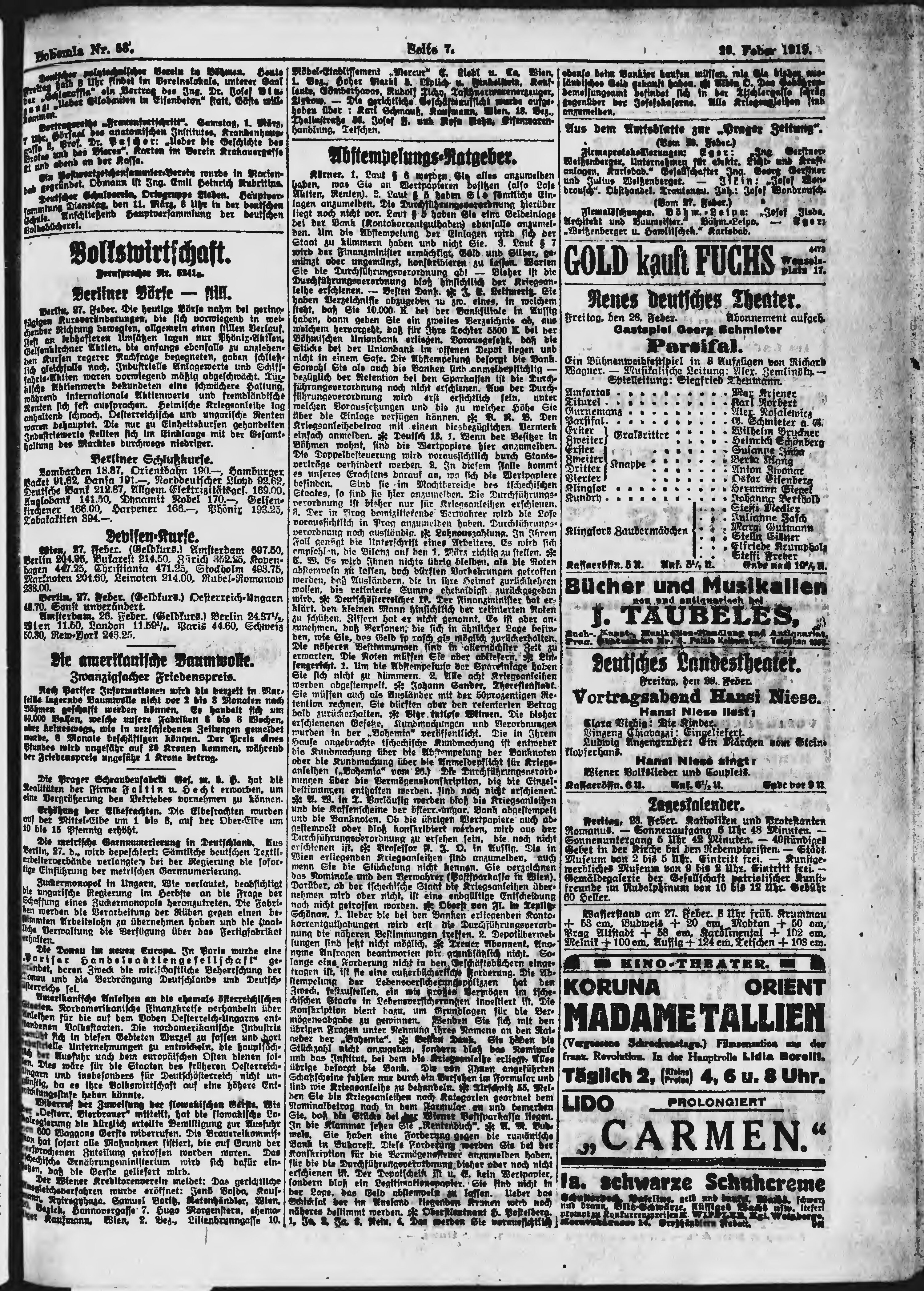 * Datum vydání výtisku: 28.2.1919 Číslo výtisku: 58 Poznámky k výtisku: ranní vydání;