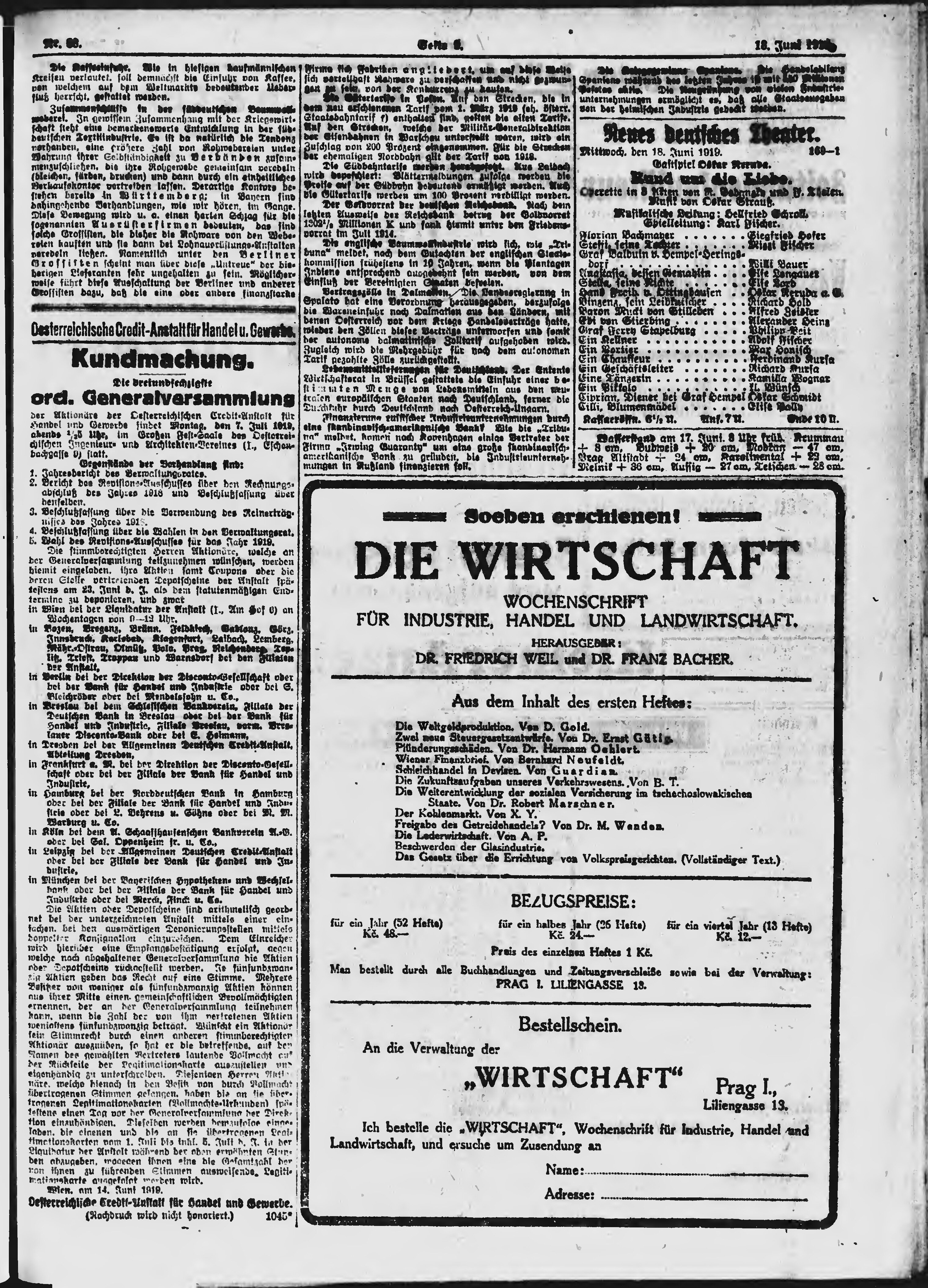 * Datum vydání výtisku: 18.6.1919 Číslo výtisku: 68 Poznámky k výtisku: ranní vydání;