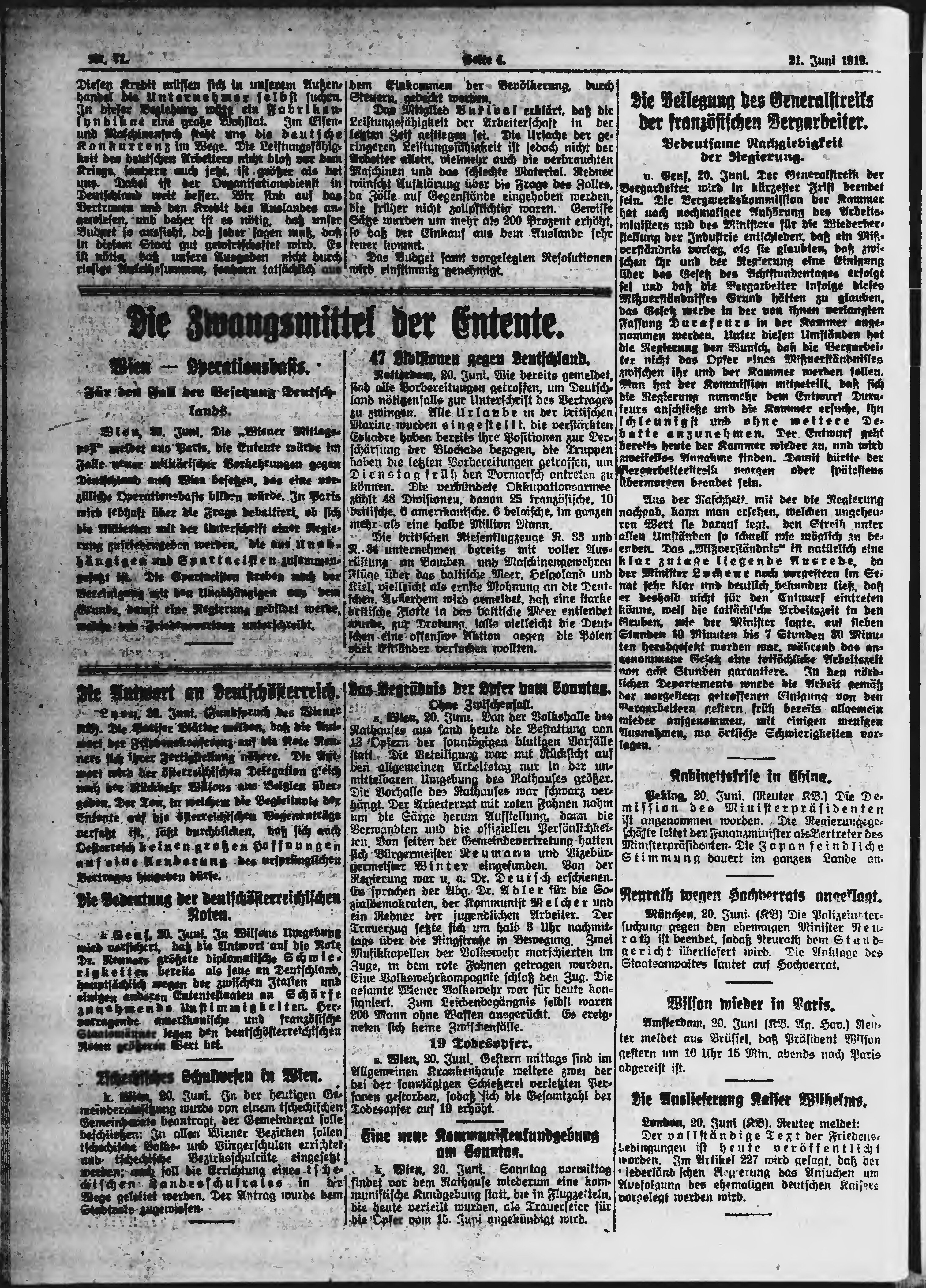 * Datum vydání výtisku: 21.6.1919 Číslo výtisku: 71 Poznámky k výtisku: ranní vydání;