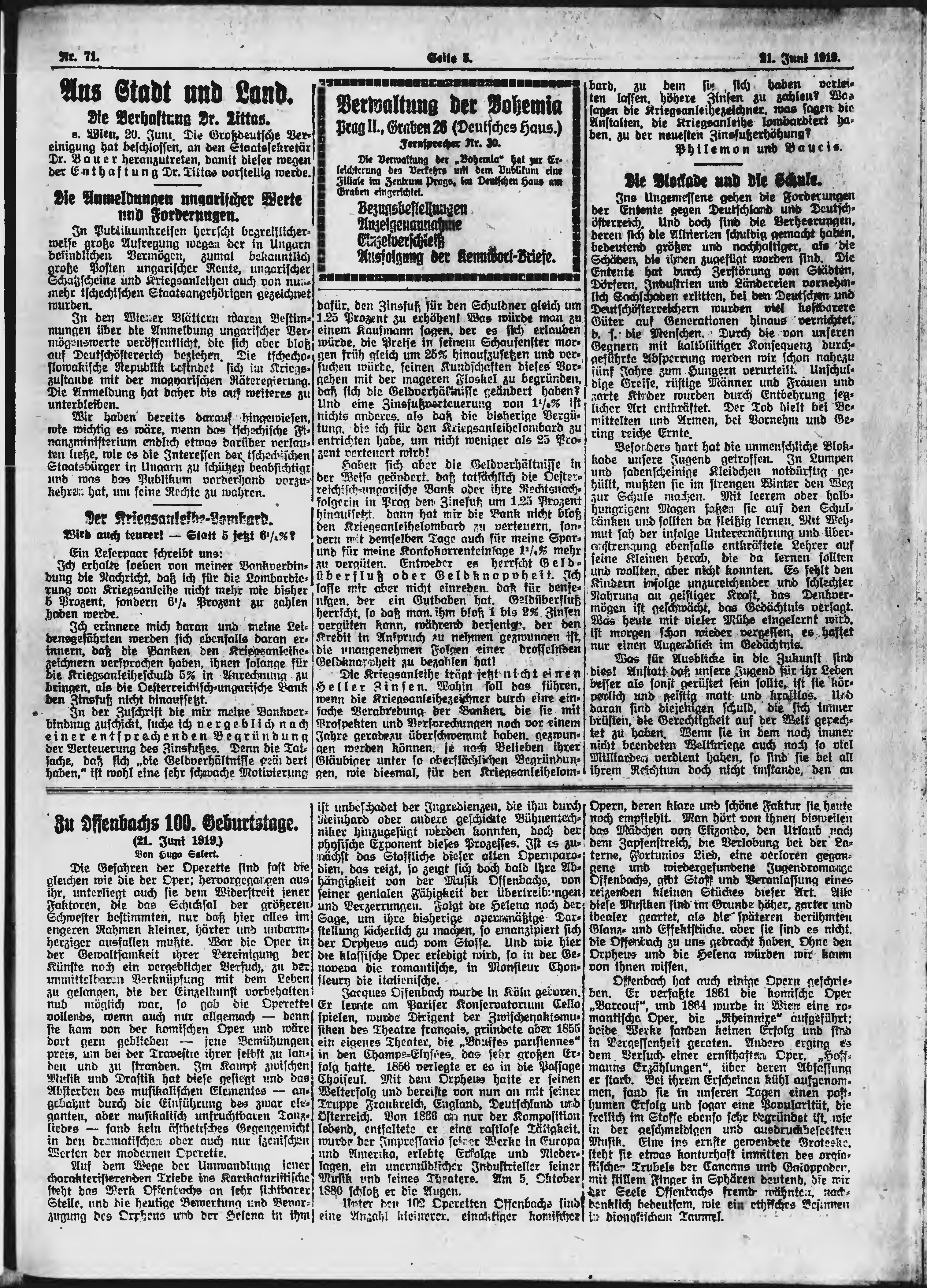 * Datum vydání výtisku: 21.6.1919 Číslo výtisku: 71 Poznámky k výtisku: ranní vydání;
