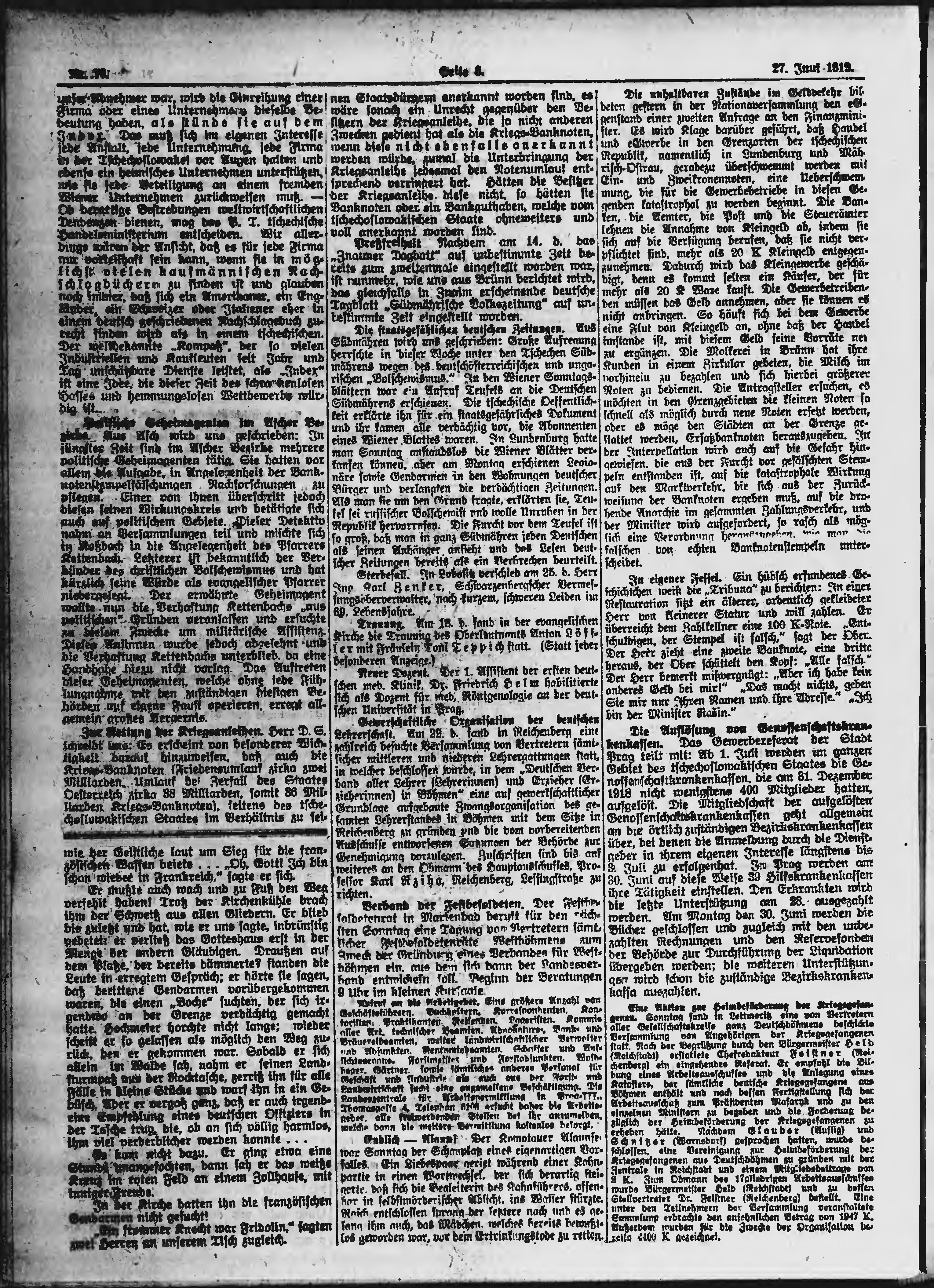 * Datum vydání výtisku: 27.6.1919 Číslo výtisku: 76 Poznámky k výtisku: ranní vydání;