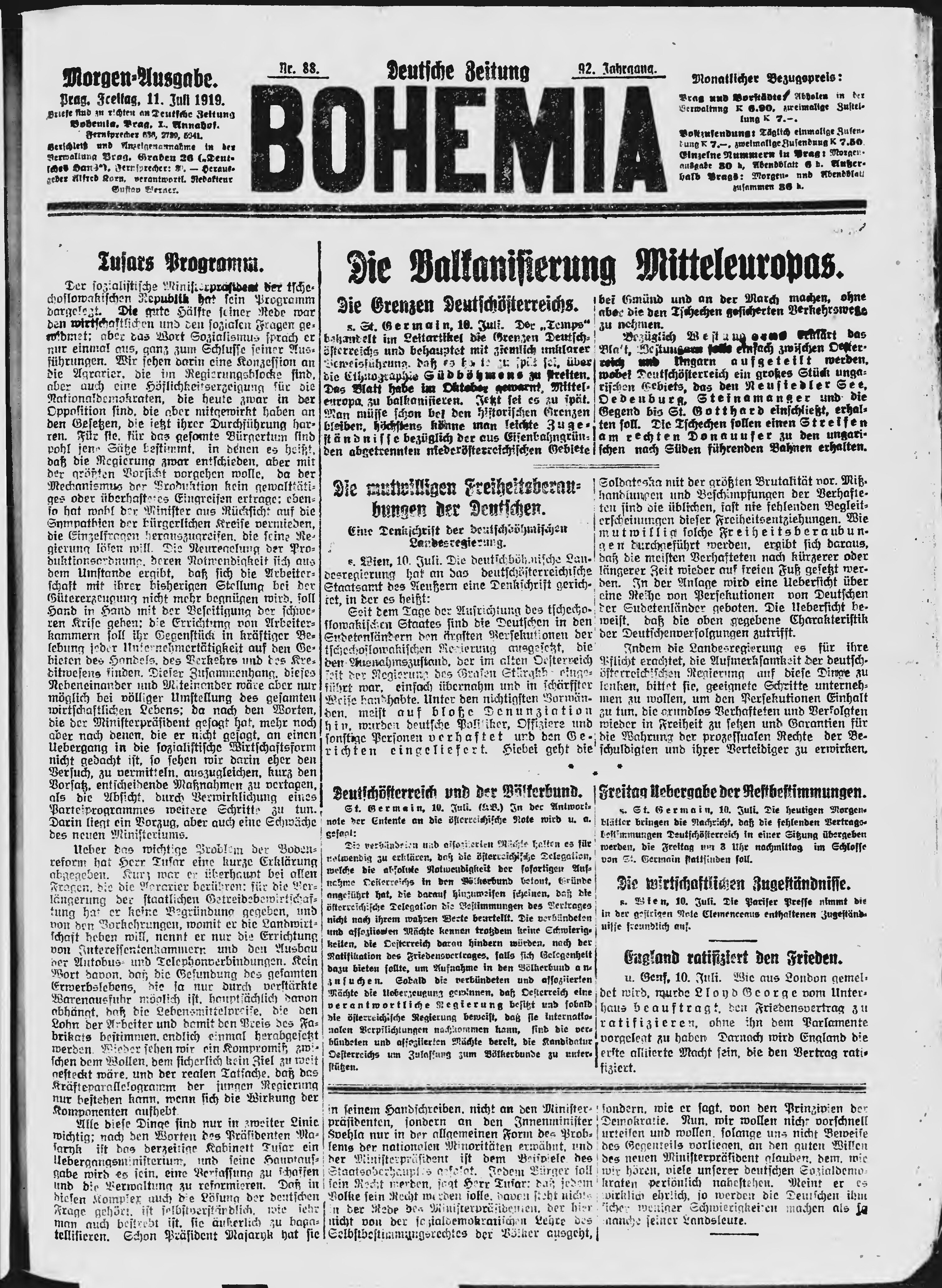 * Datum vydání výtisku: 11.7.1919 Číslo výtisku: 88 Poznámky k výtisku: ranní vydání;