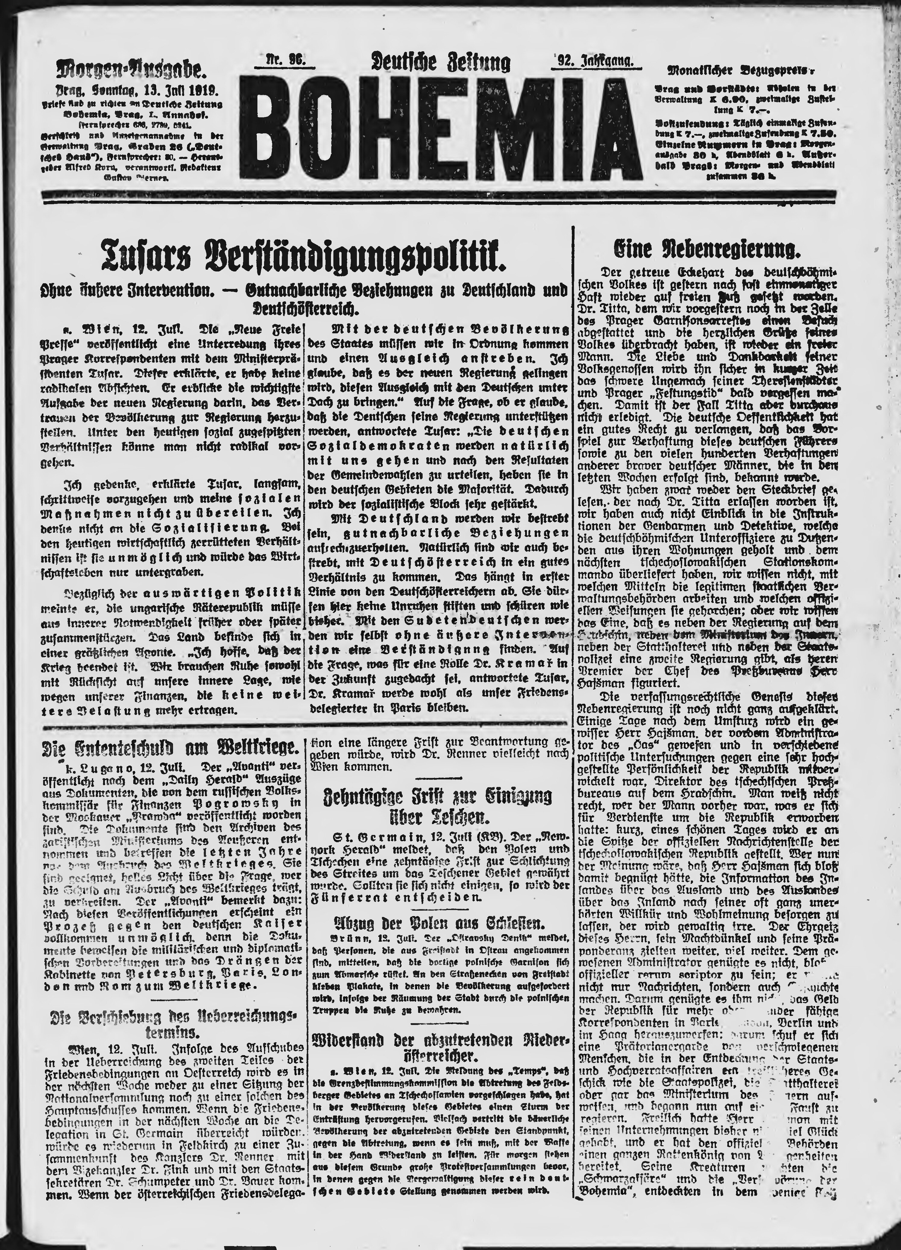 * Datum vydání výtisku: 13.7.1919 Číslo výtisku: 90 Poznámky k výtisku: ranní vydání;