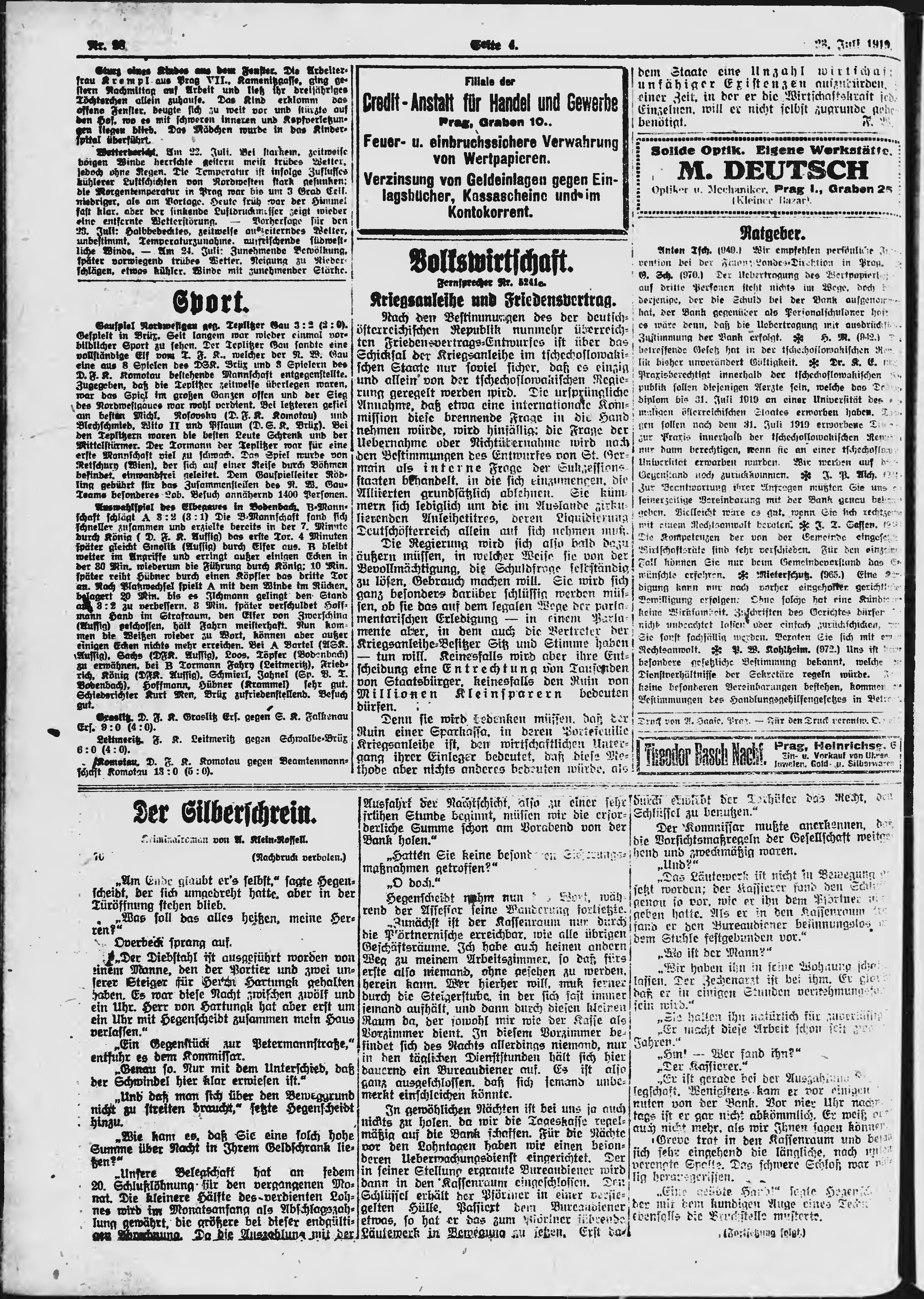 * Datum vydání výtisku: 23.7.1919 Číslo výtisku: 98 Poznámky k výtisku: večerní vydání;