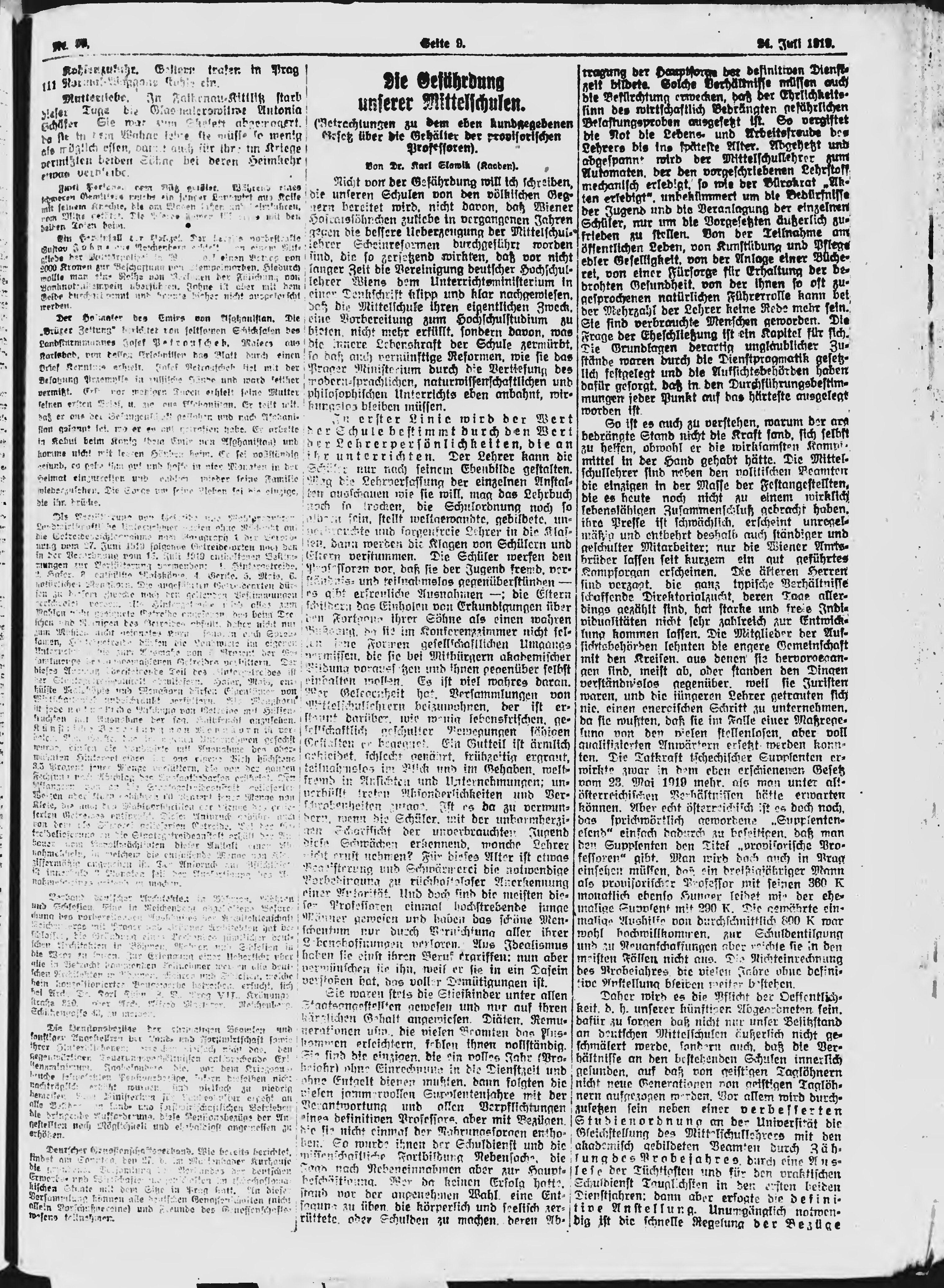 * Datum vydání výtisku: 24.7.1919 Číslo výtisku: 99 Poznámky k výtisku: ranní vydání;