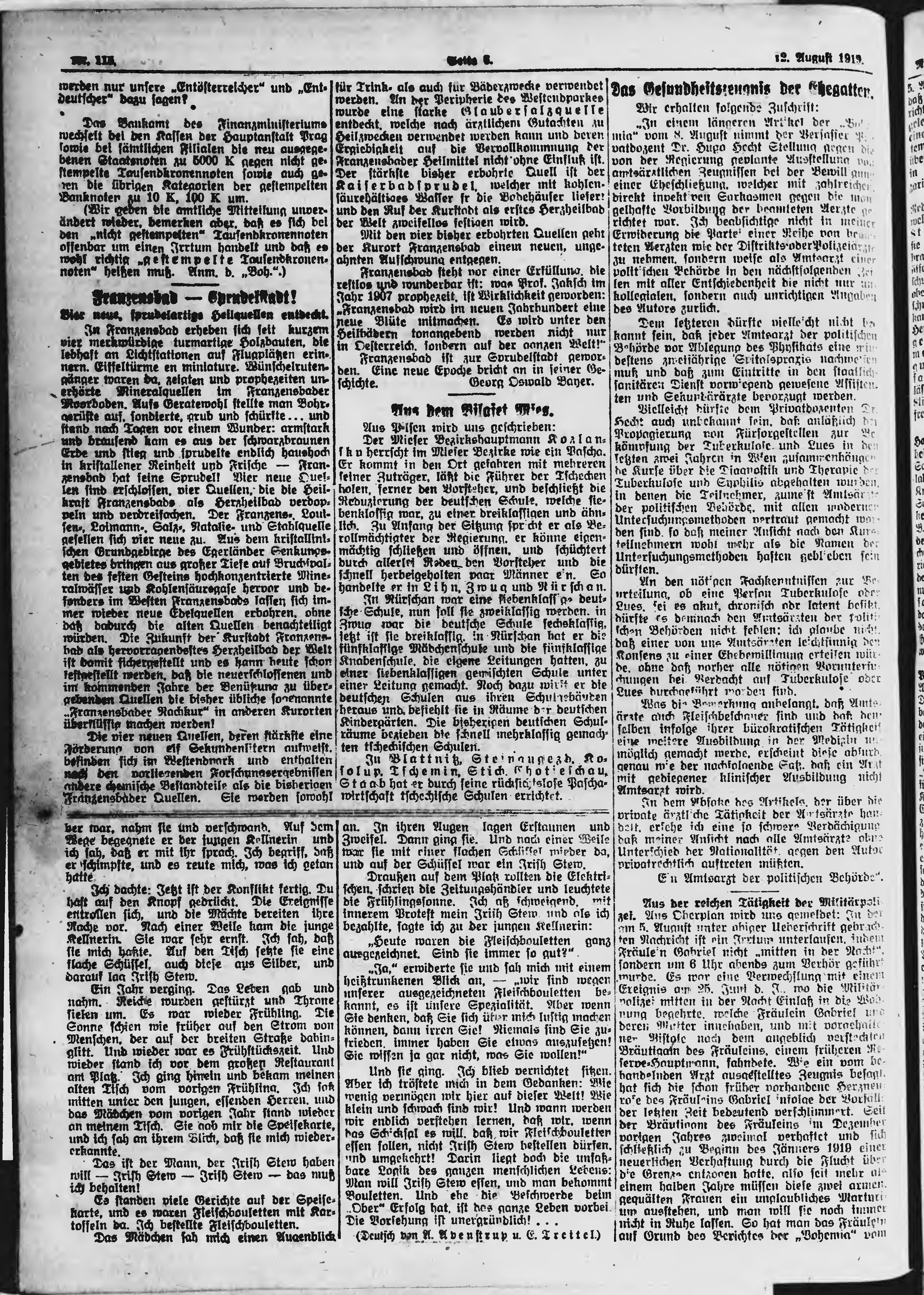 * Datum vydání výtisku: 12.8.1919 Číslo výtisku: 115 Poznámky k výtisku: ranní vydání;