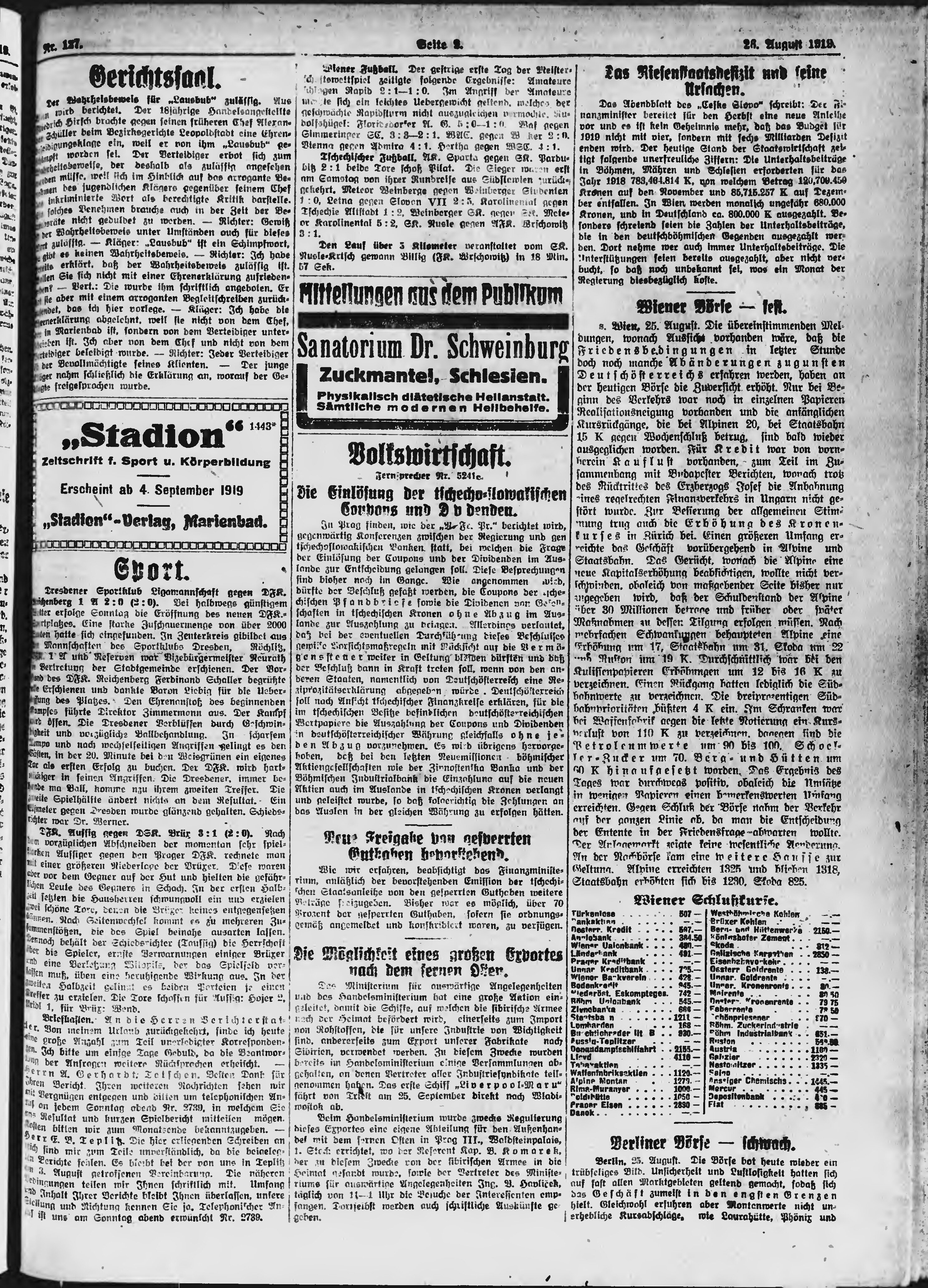 * Datum vydání výtisku: 26.8.1919 Číslo výtisku: 127 Poznámky k výtisku: ranní vydání;