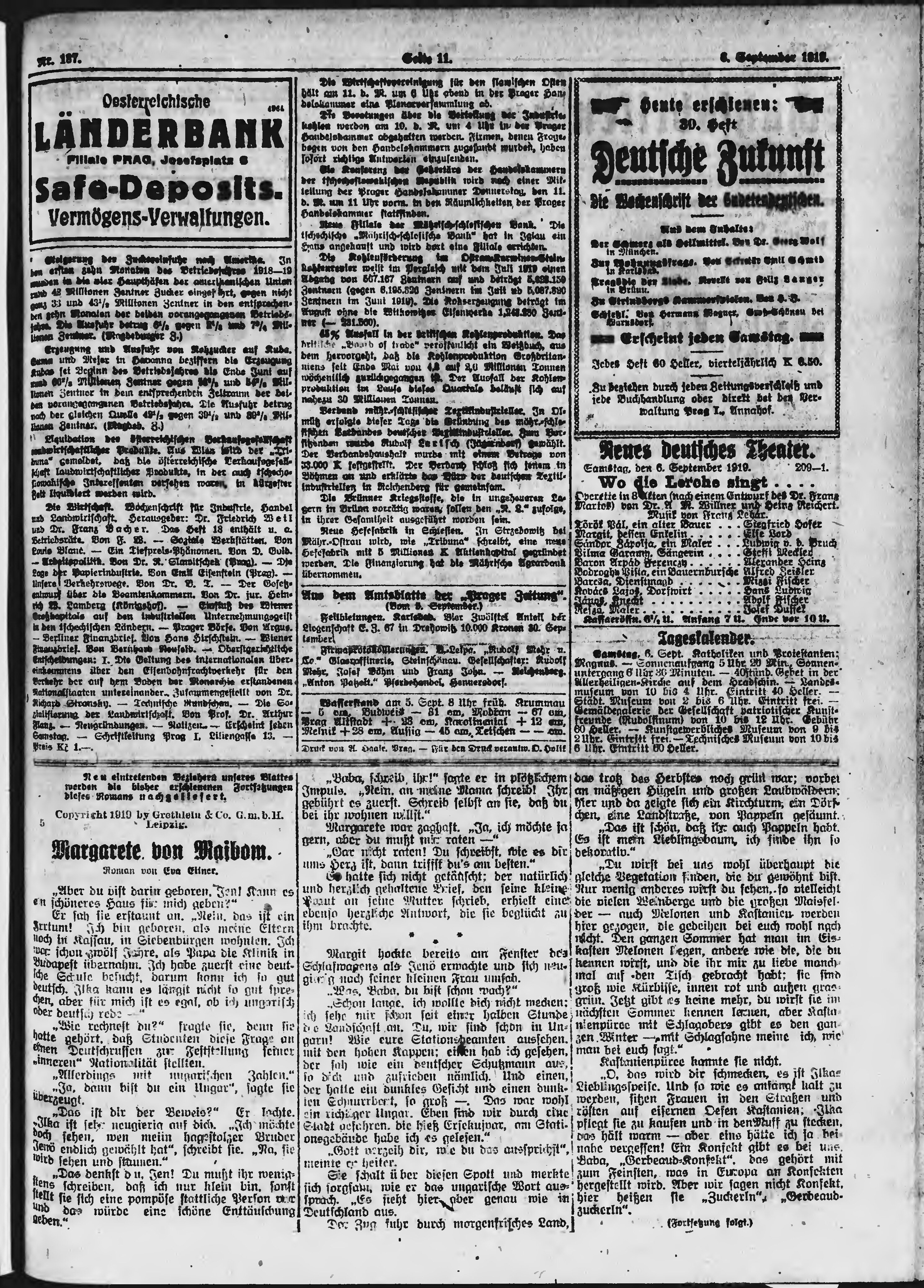 * Datum vydání výtisku: 6.9.1919 Číslo výtisku: 137 Poznámky k výtisku: ranní vydání;