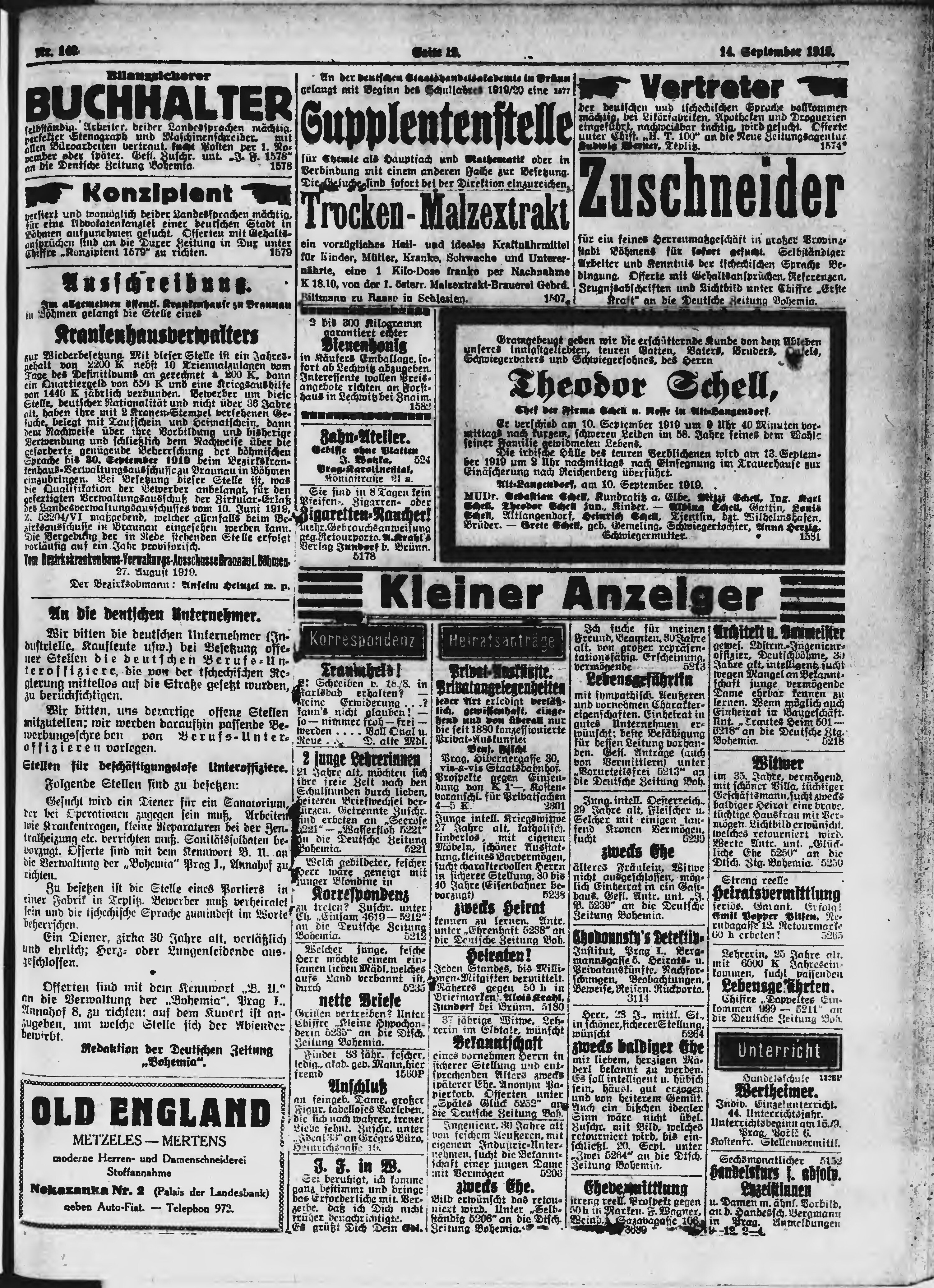 * Datum vydání výtisku: 14.9.1919 Číslo výtisku: 143 Poznámky k výtisku: ranní vydání;