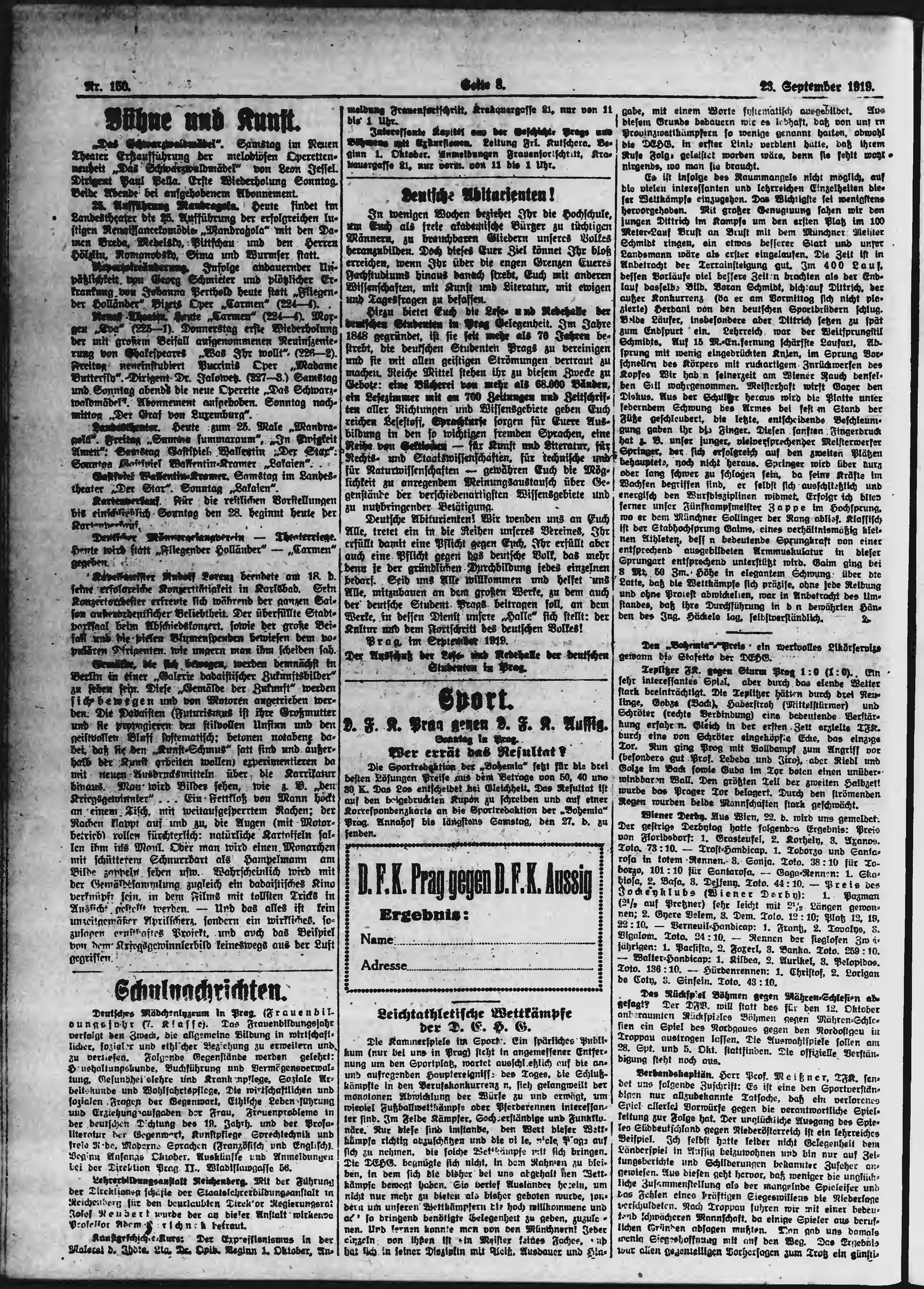 * Datum vydání výtisku: 23.9.1919 Číslo výtisku: 150 Poznámky k výtisku: ranní vydání;