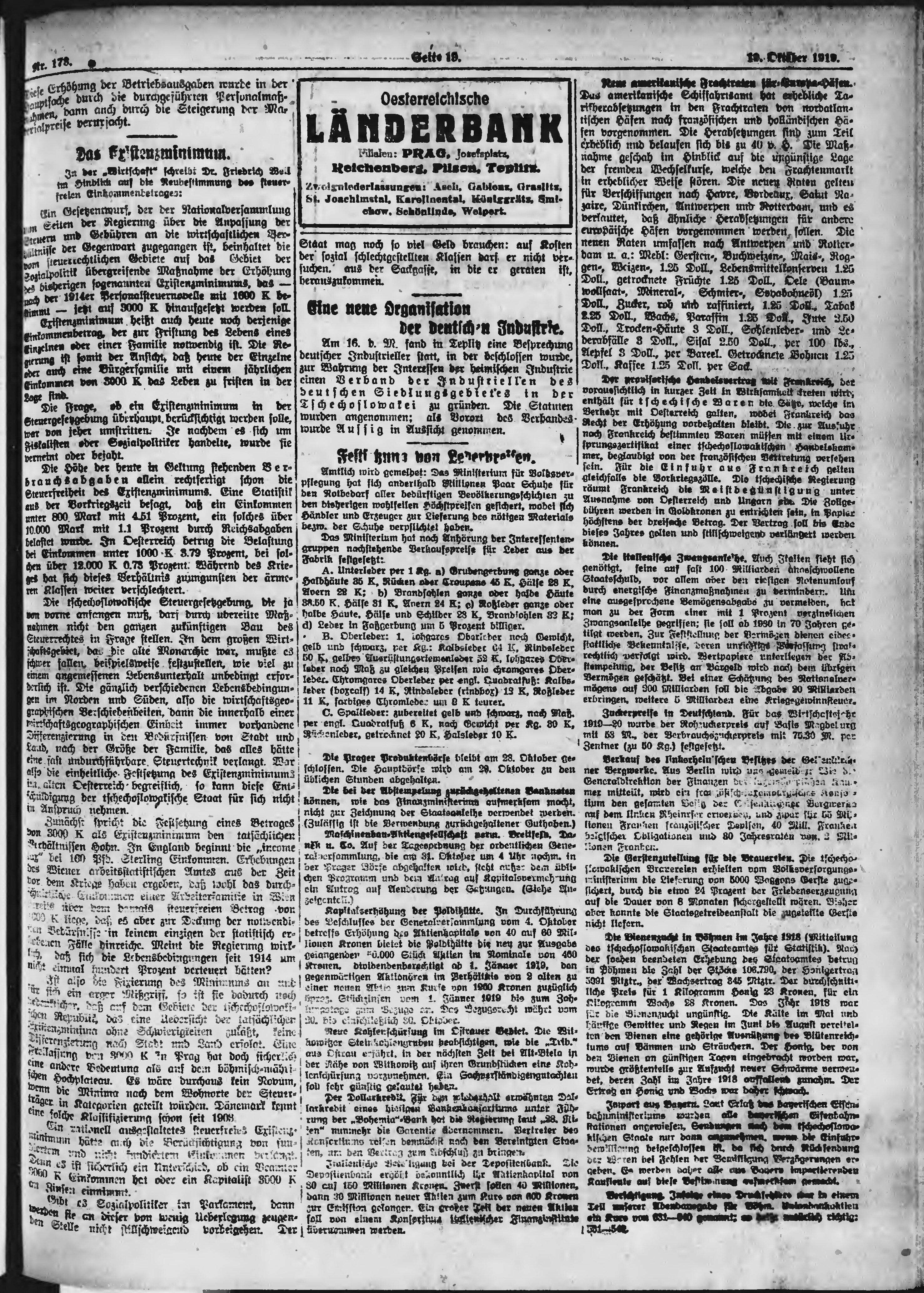 * Datum vydání výtisku: 19.10.1919 Číslo výtisku: 173 Poznámky k výtisku: ranní vydání;