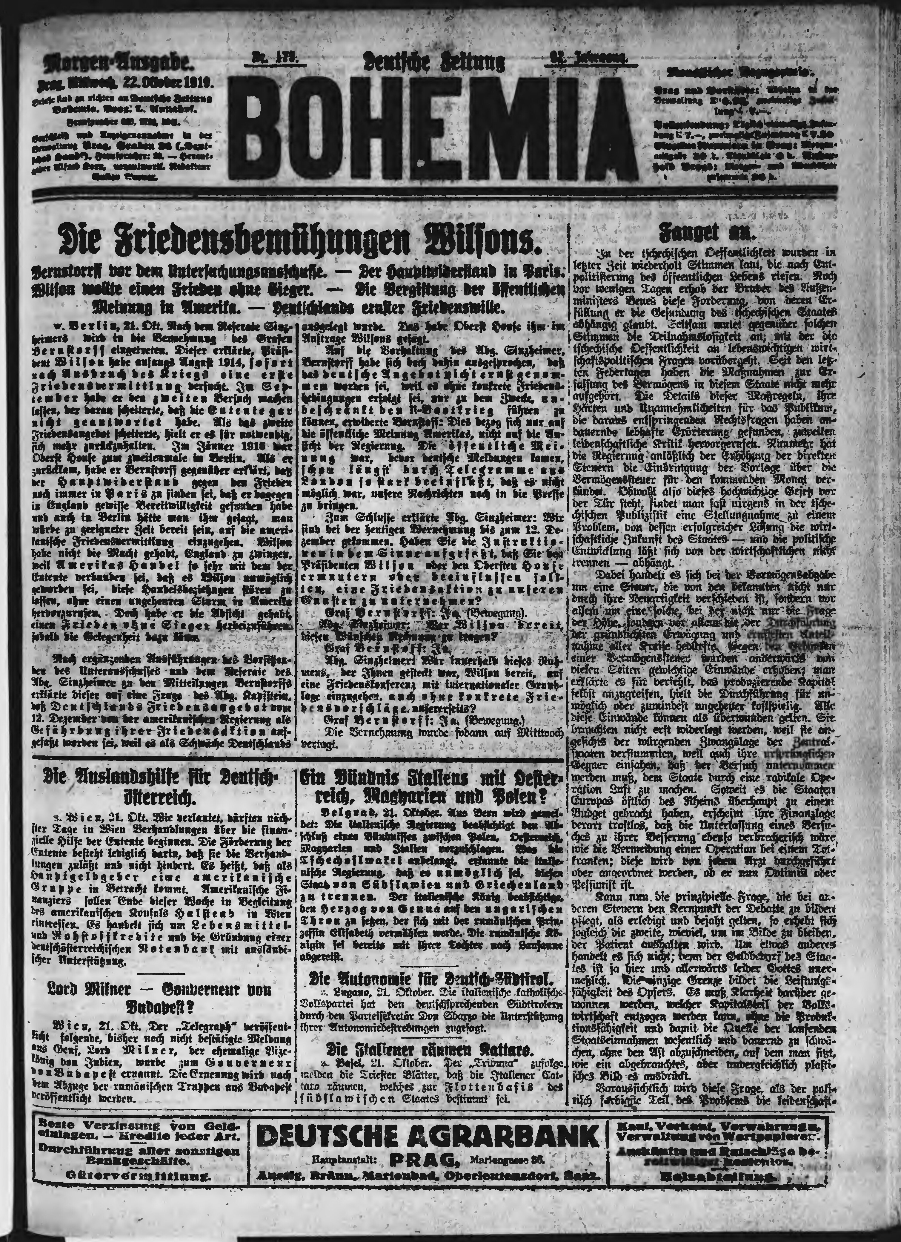 * Datum vydání výtisku: 22.10.1919 Číslo výtisku: 175 Poznámky k výtisku: ranní vydání;