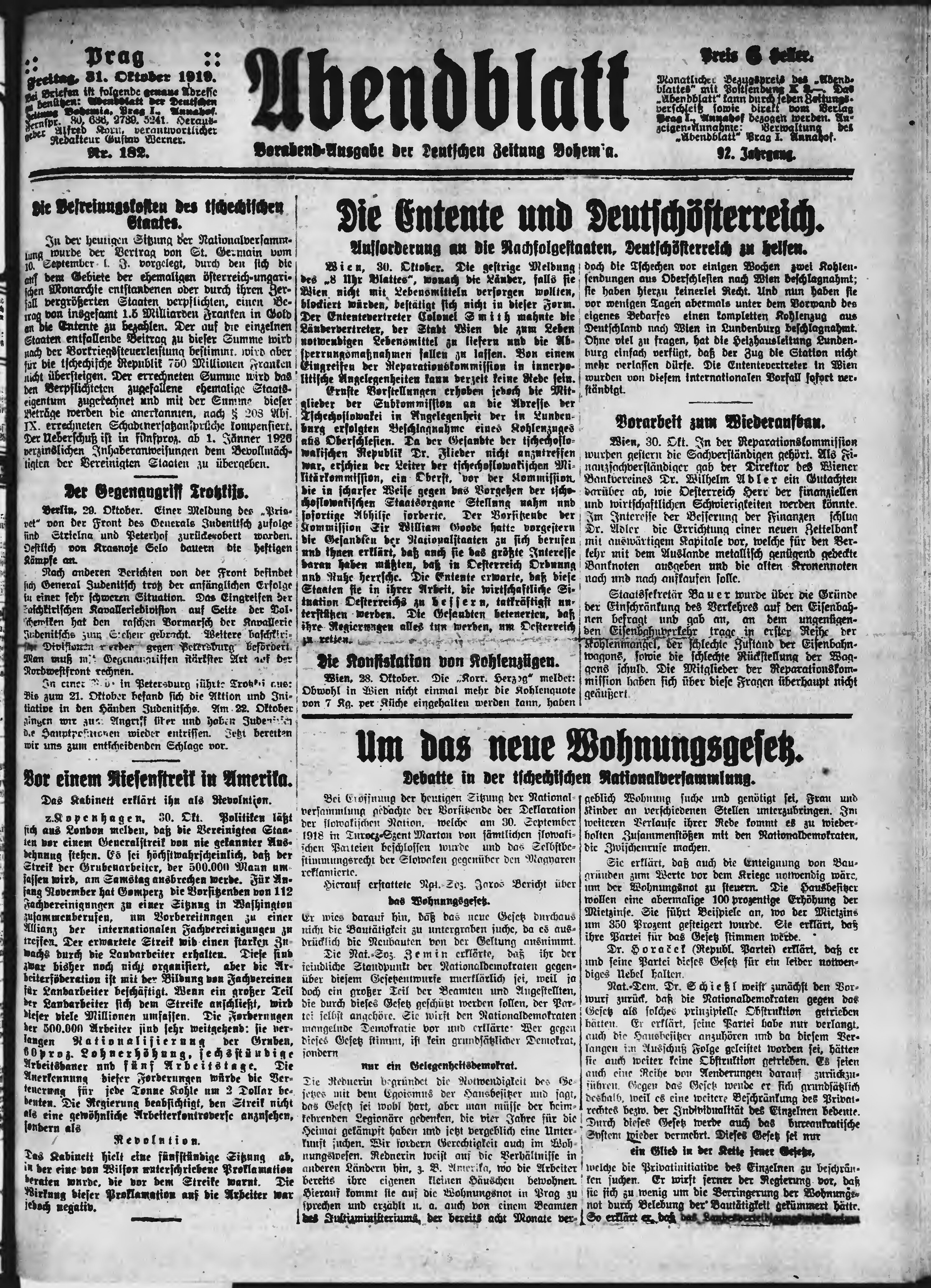 * Datum vydání výtisku: 31.10.1919 Číslo výtisku: 182 Poznámky k výtisku: večerní vydání;