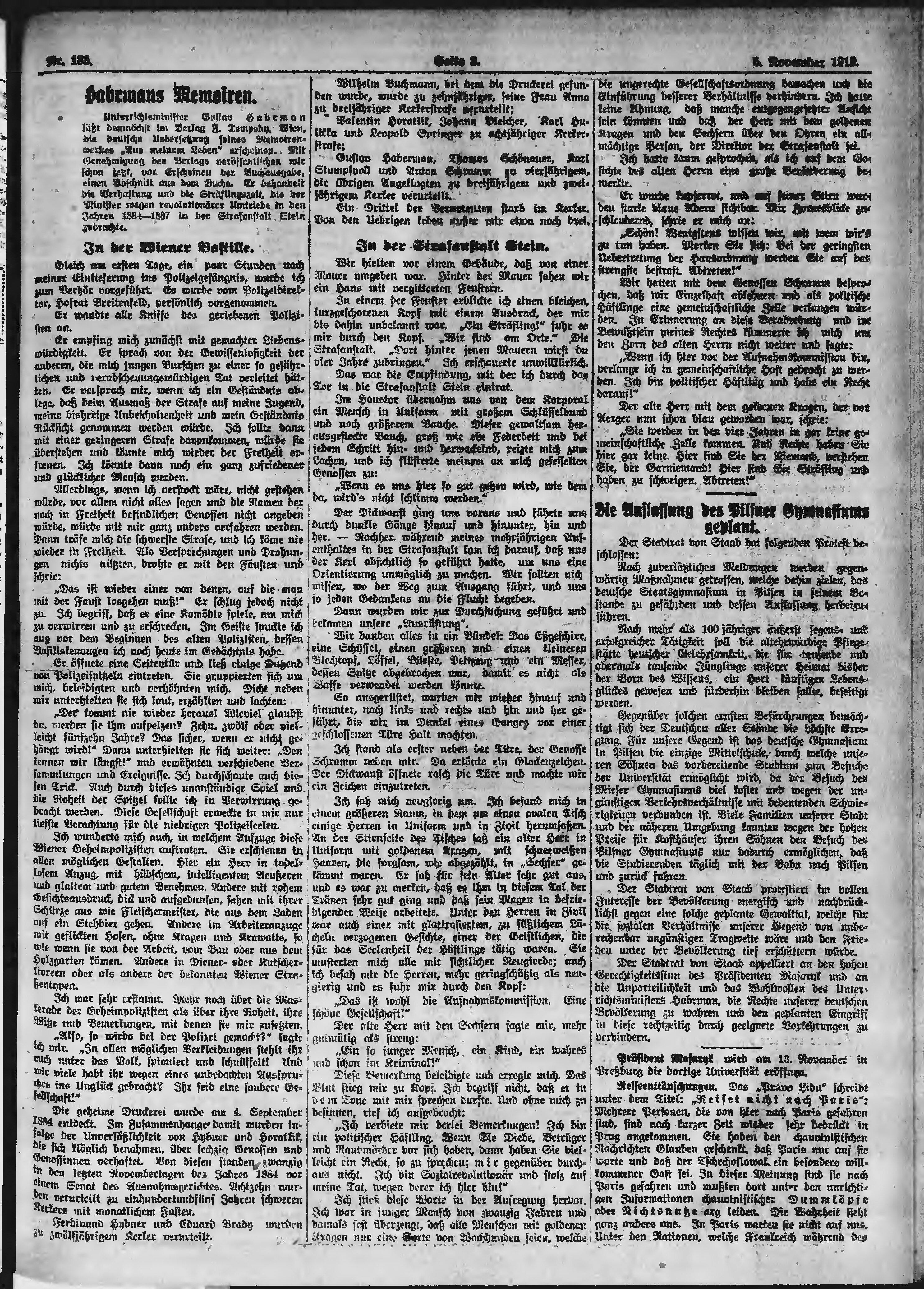 * Datum vydání výtisku: 5.11.1919 Číslo výtisku: 185 Poznámky k výtisku: večerní vydání;