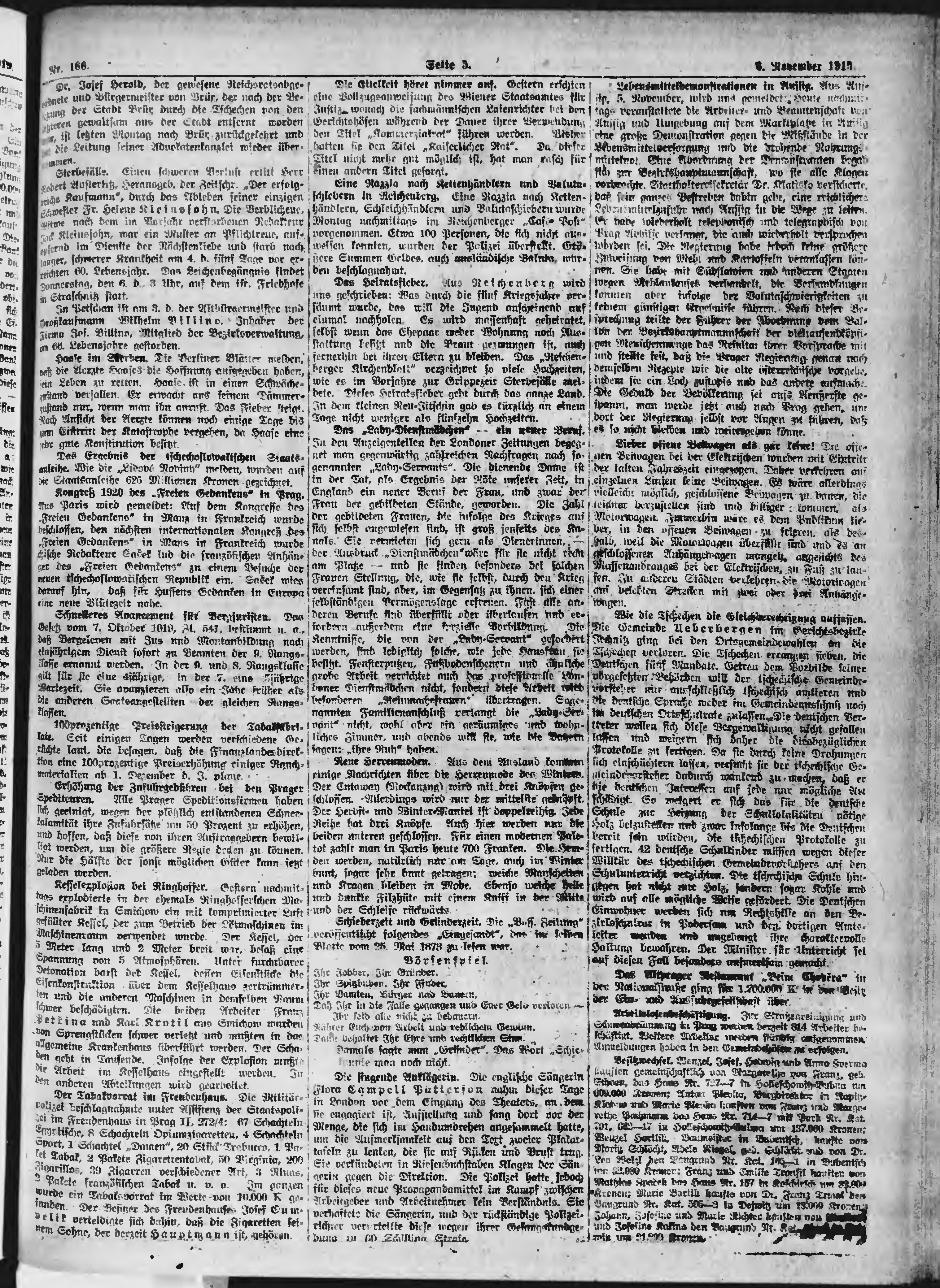 * Datum vydání výtisku: 6.11.1919 Číslo výtisku: 186 Poznámky k výtisku: ranní vydání;