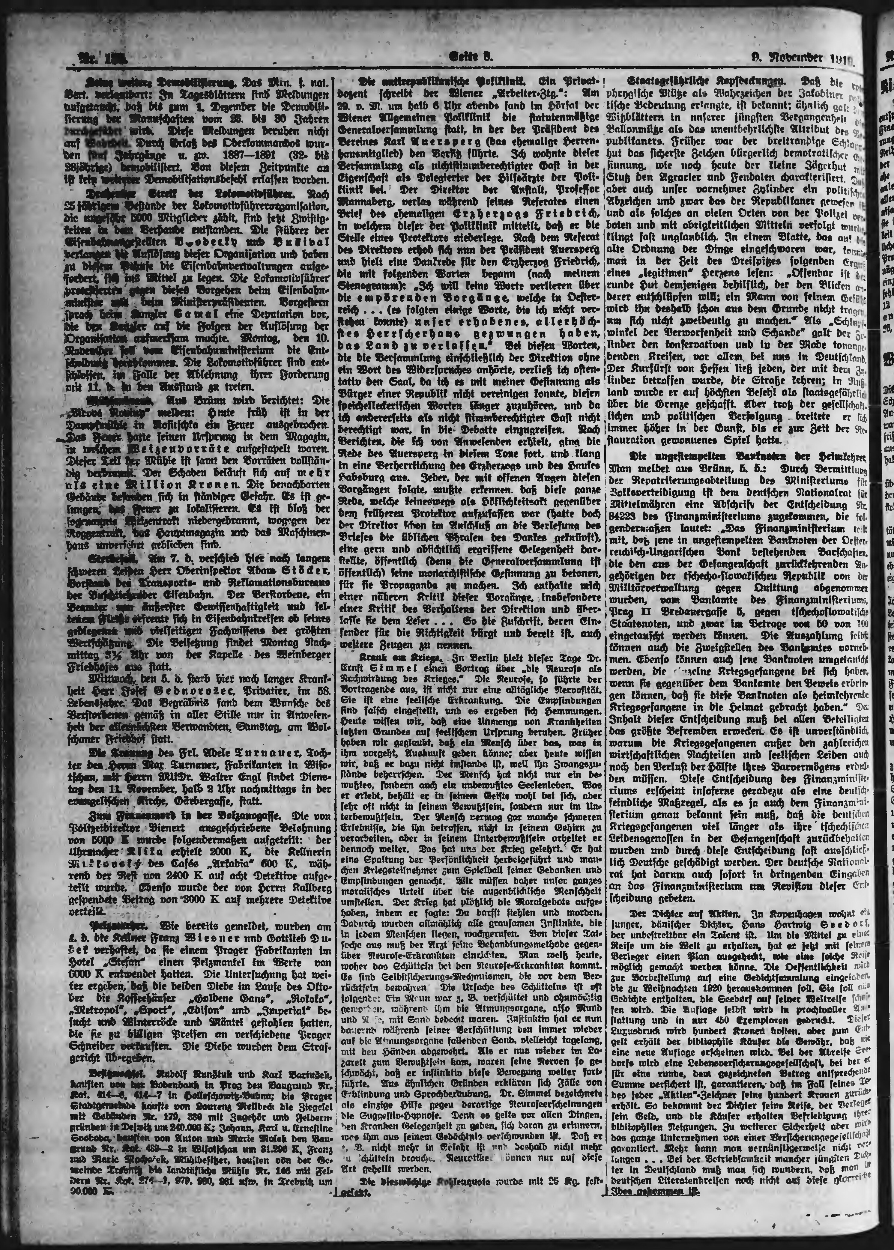 * Datum vydání výtisku: 9.11.1919 Číslo výtisku: 189 Poznámky k výtisku: ranní vydání;