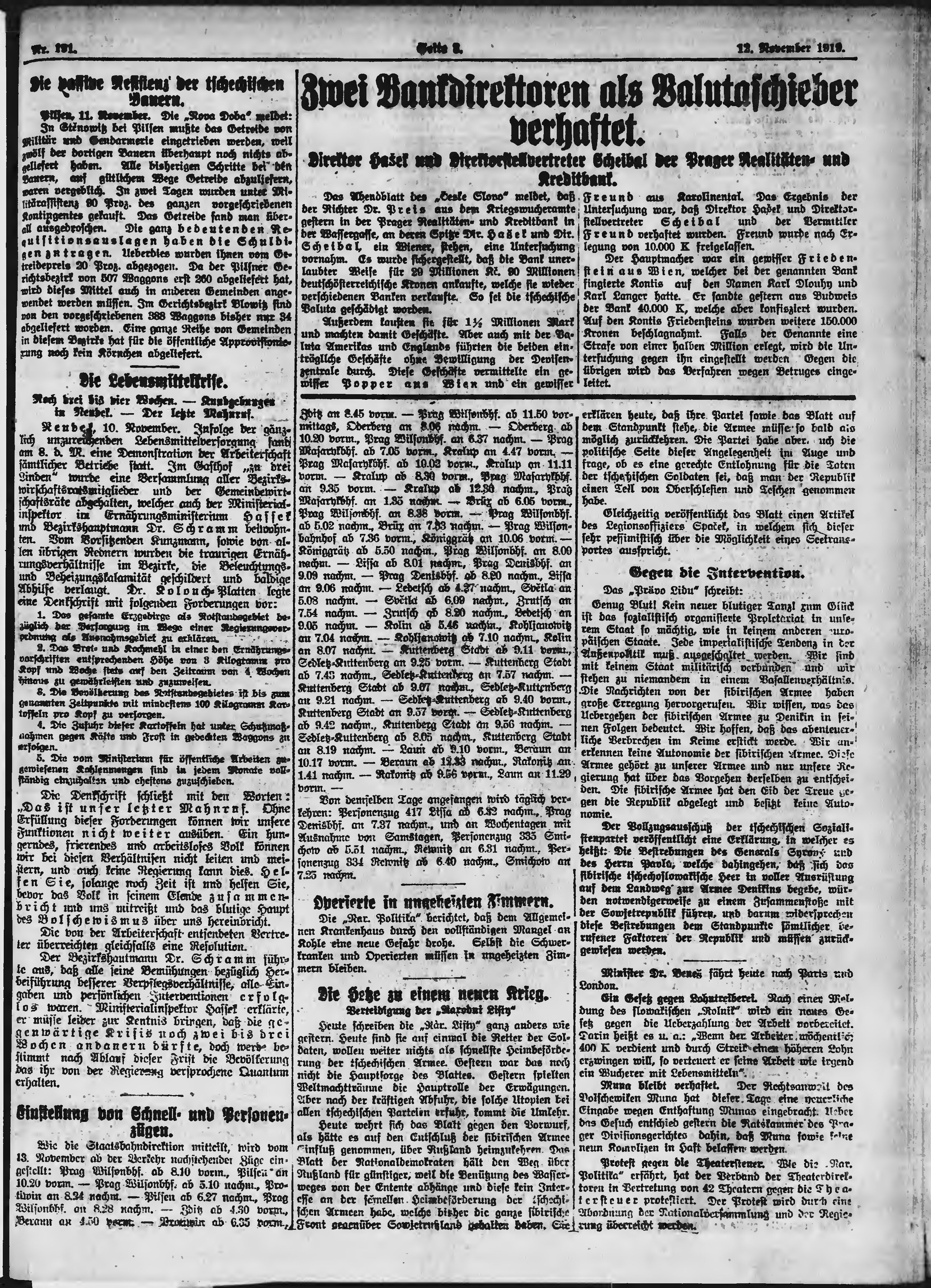 * Datum vydání výtisku: 12.11.1919 Číslo výtisku: 191 Poznámky k výtisku: večerní vydání;