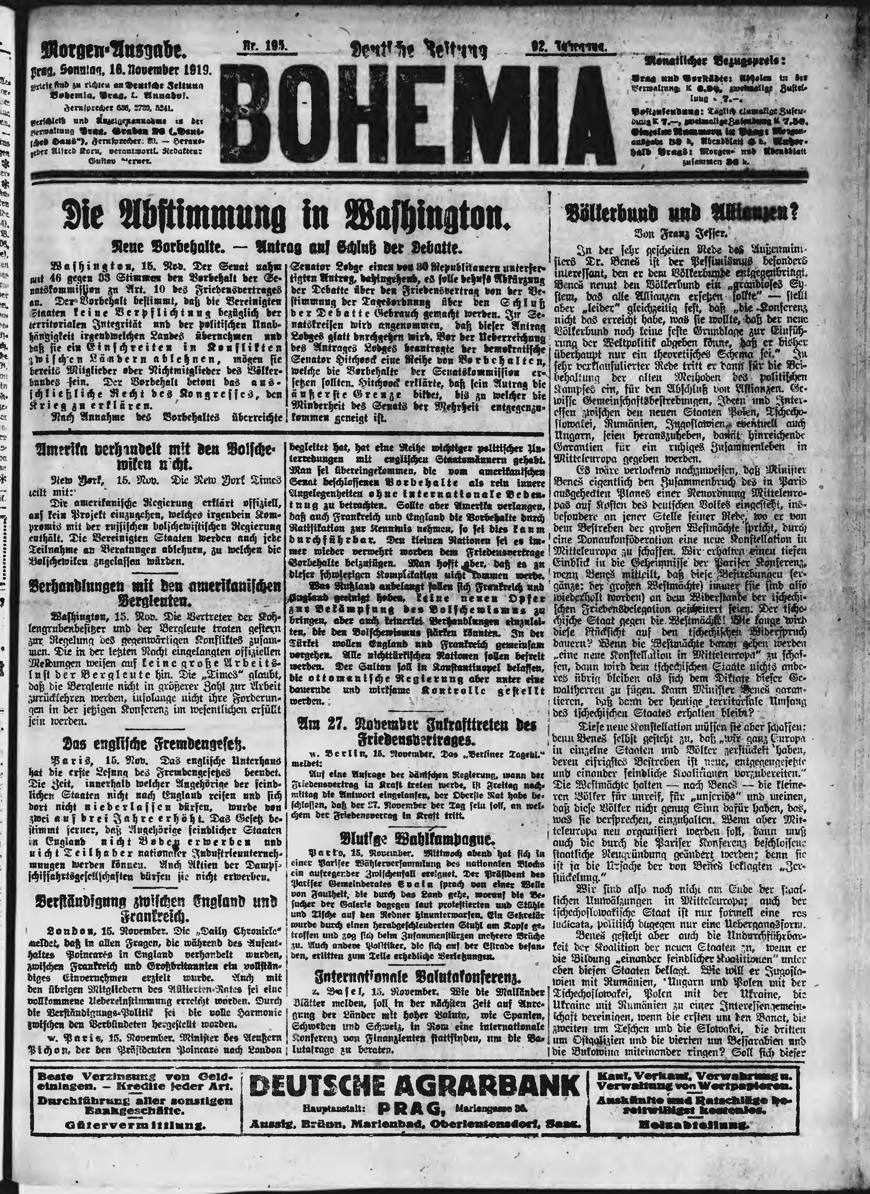 * Datum vydání výtisku: 16.11.1919 Číslo výtisku: 195 Poznámky k výtisku: ranní vydání;