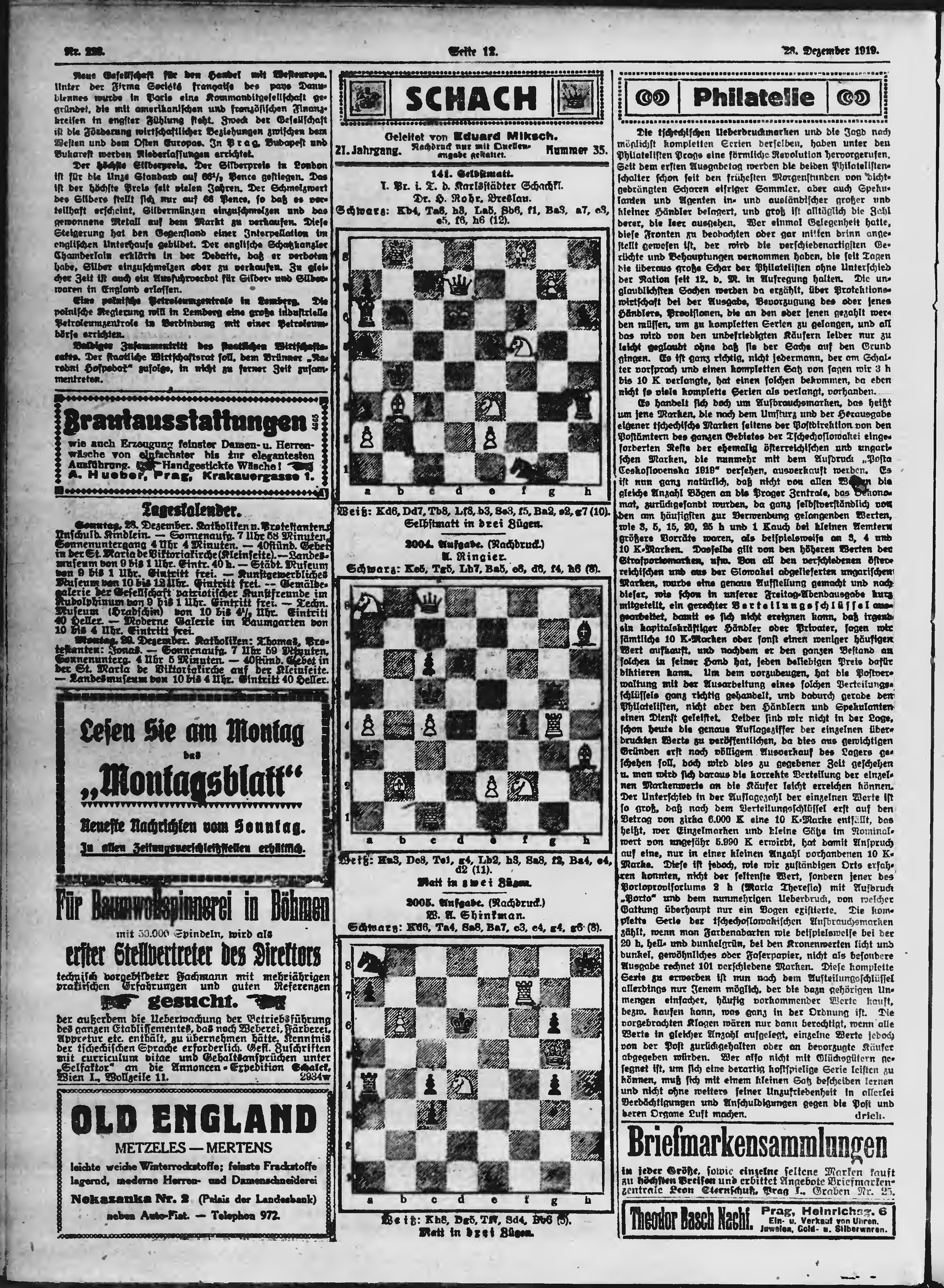 * Datum vydání výtisku: 28.12.1919 Číslo výtisku: 228 Poznámky k výtisku: ranní vydání;