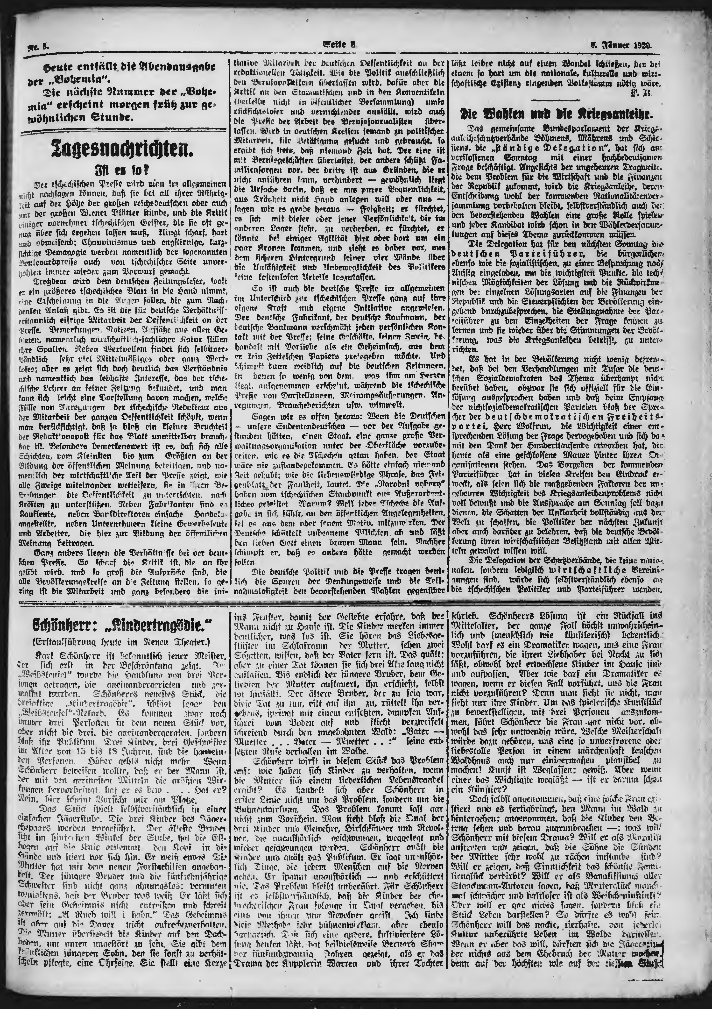 * Datum vydání výtisku: 6.1.1920 Číslo výtisku: 5 Poznámky k výtisku: ranní vydání;