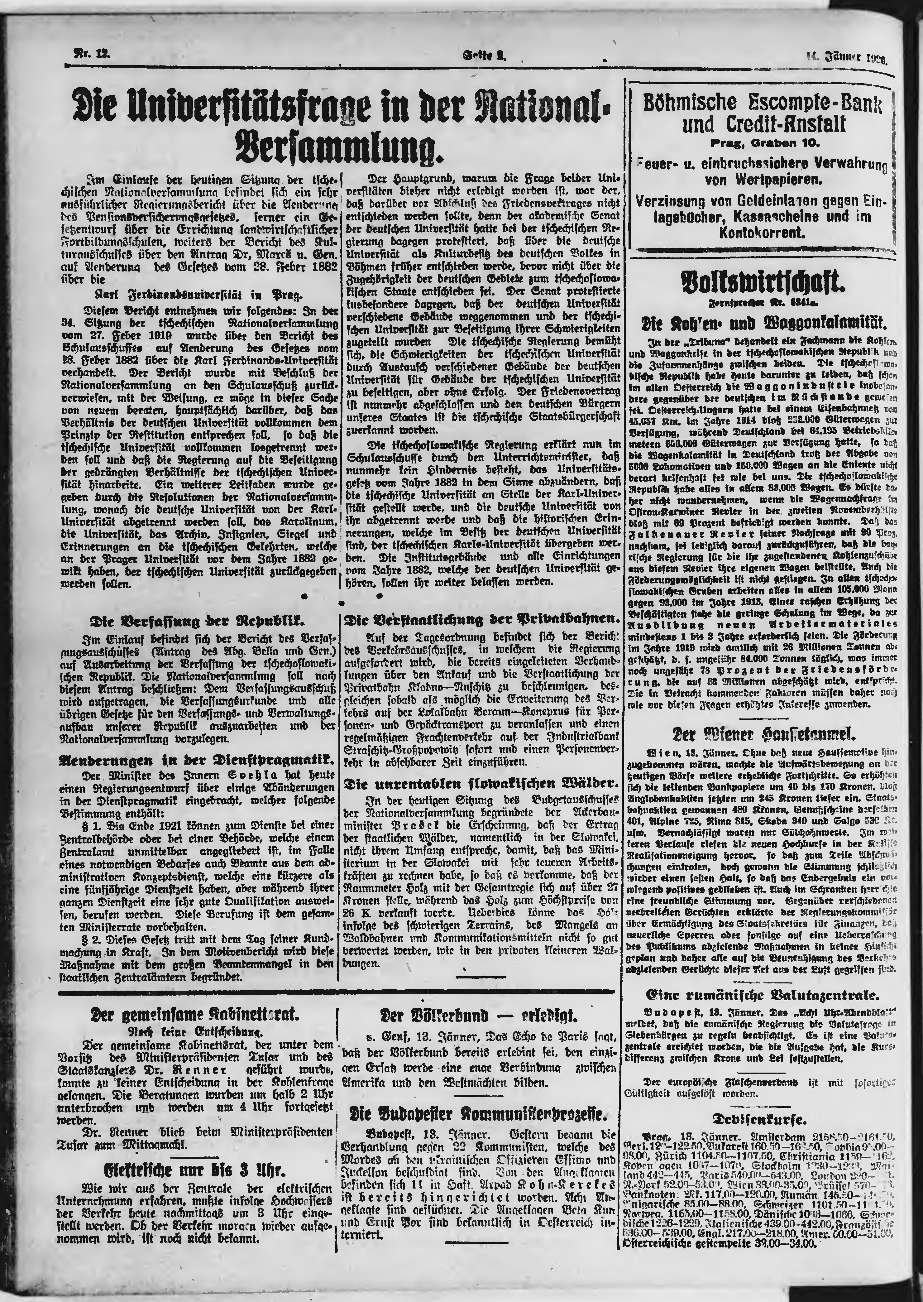 * Datum vydání výtisku: 14.1.1920 Číslo výtisku: 12 Poznámky k výtisku: večerní vydání;