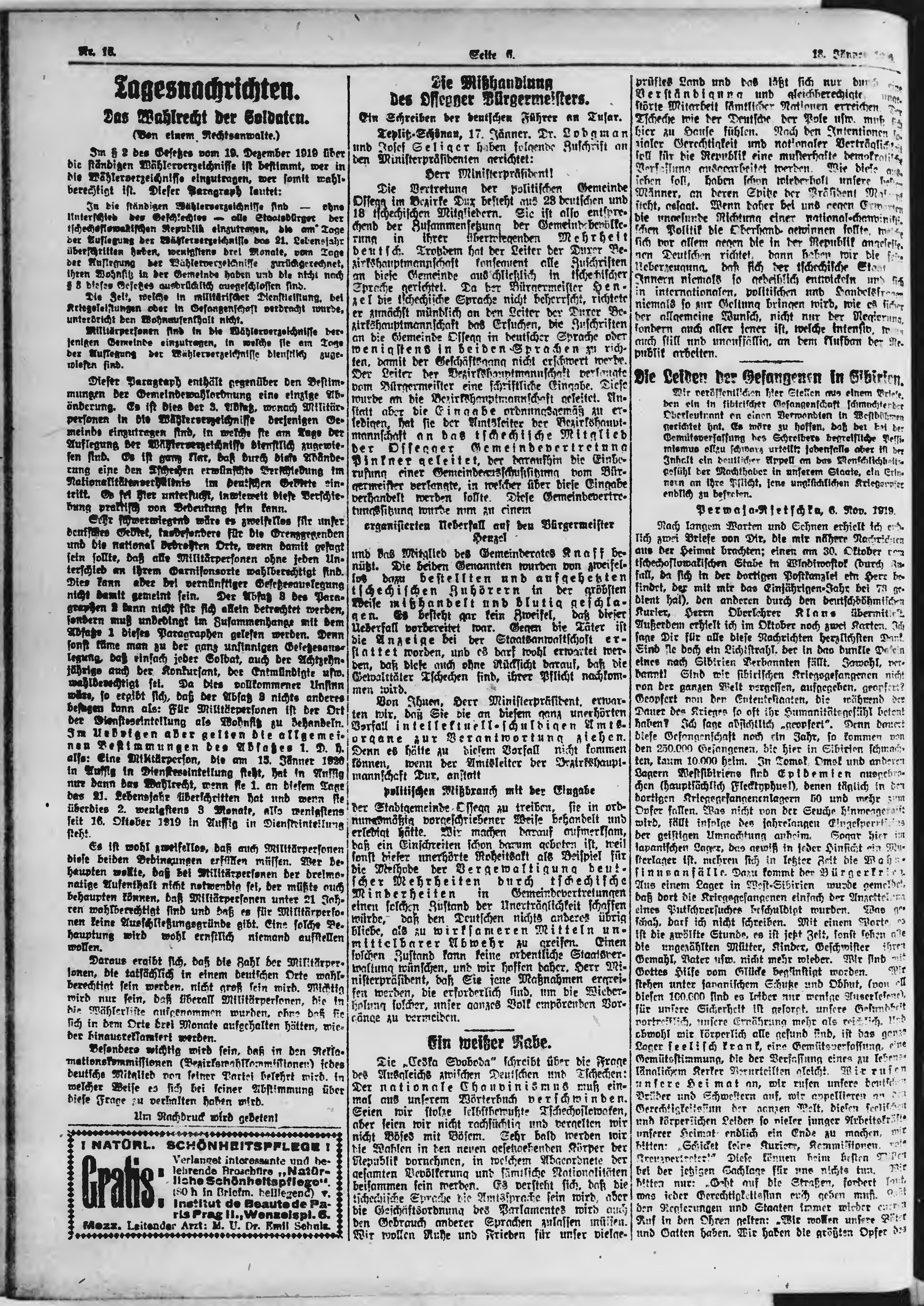 * Datum vydání výtisku: 18.1.1920 Číslo výtisku: 16 Poznámky k výtisku: ranní vydání;