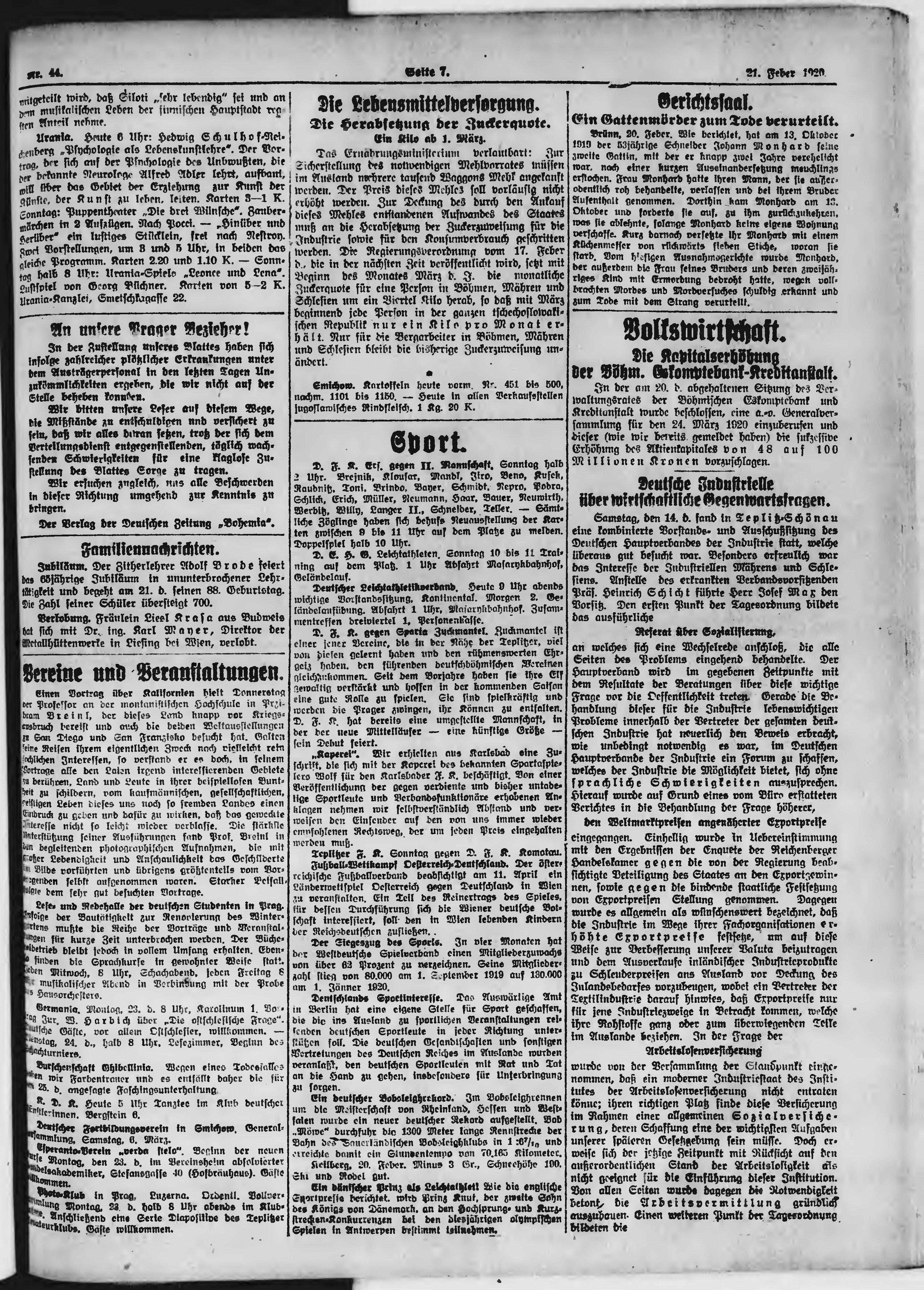 * Datum vydání výtisku: 21.2.1920 Číslo výtisku: 44 Poznámky k výtisku: ranní vydání;
