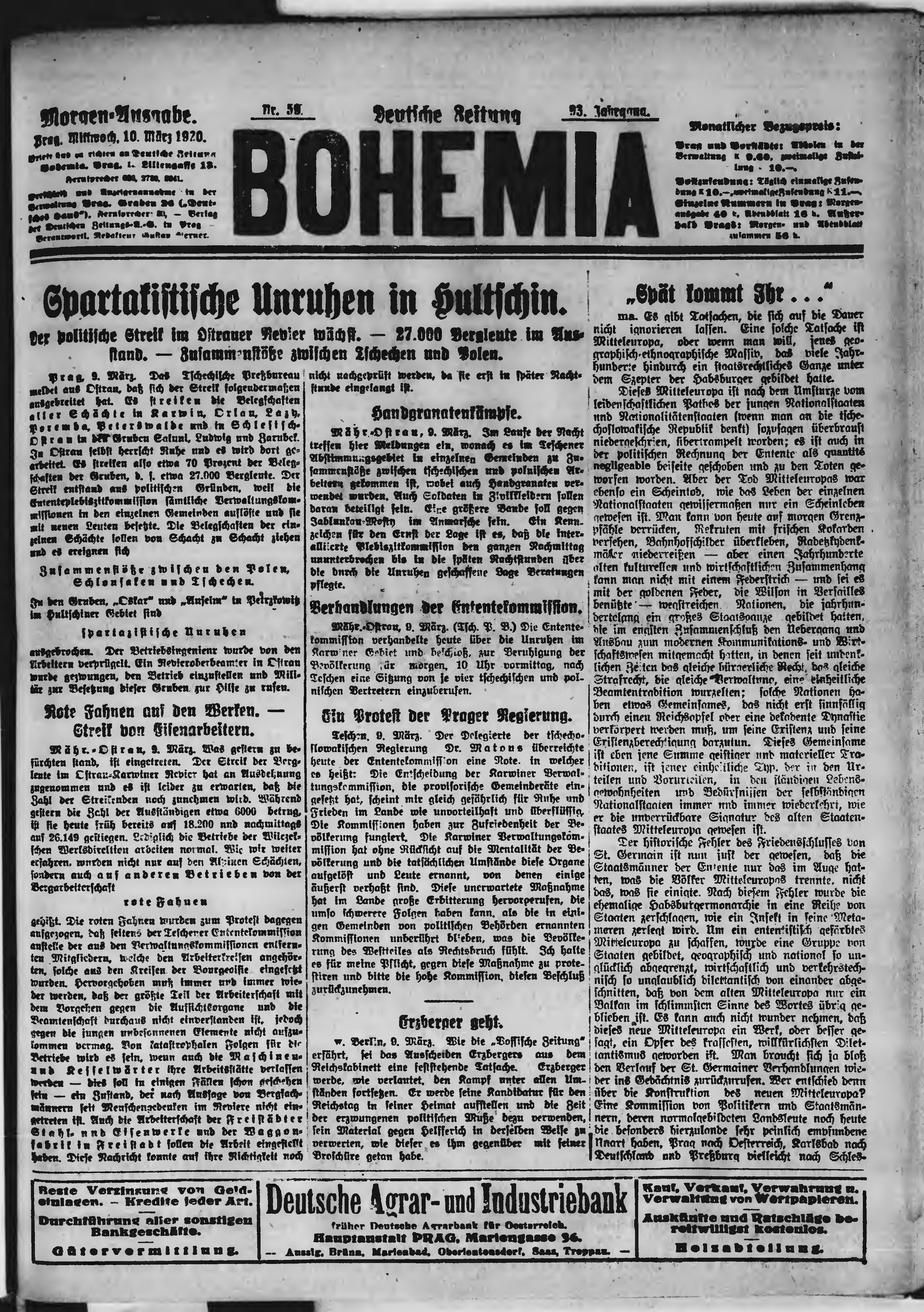 * Datum vydání výtisku: 10.3.1920 Číslo výtisku: 59 Poznámky k výtisku: ranní vydání;